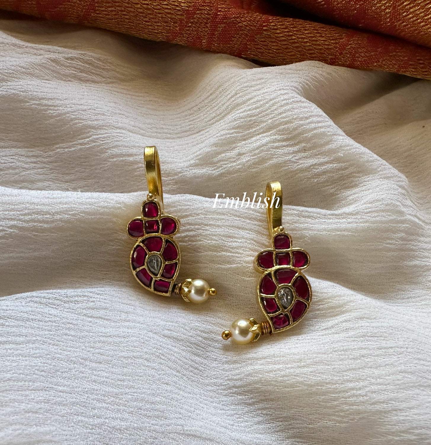 Premium Quality.Brass Made.Kundan Jadau Red with GreenPearl BeadsPrice Mentioned for a Piece..