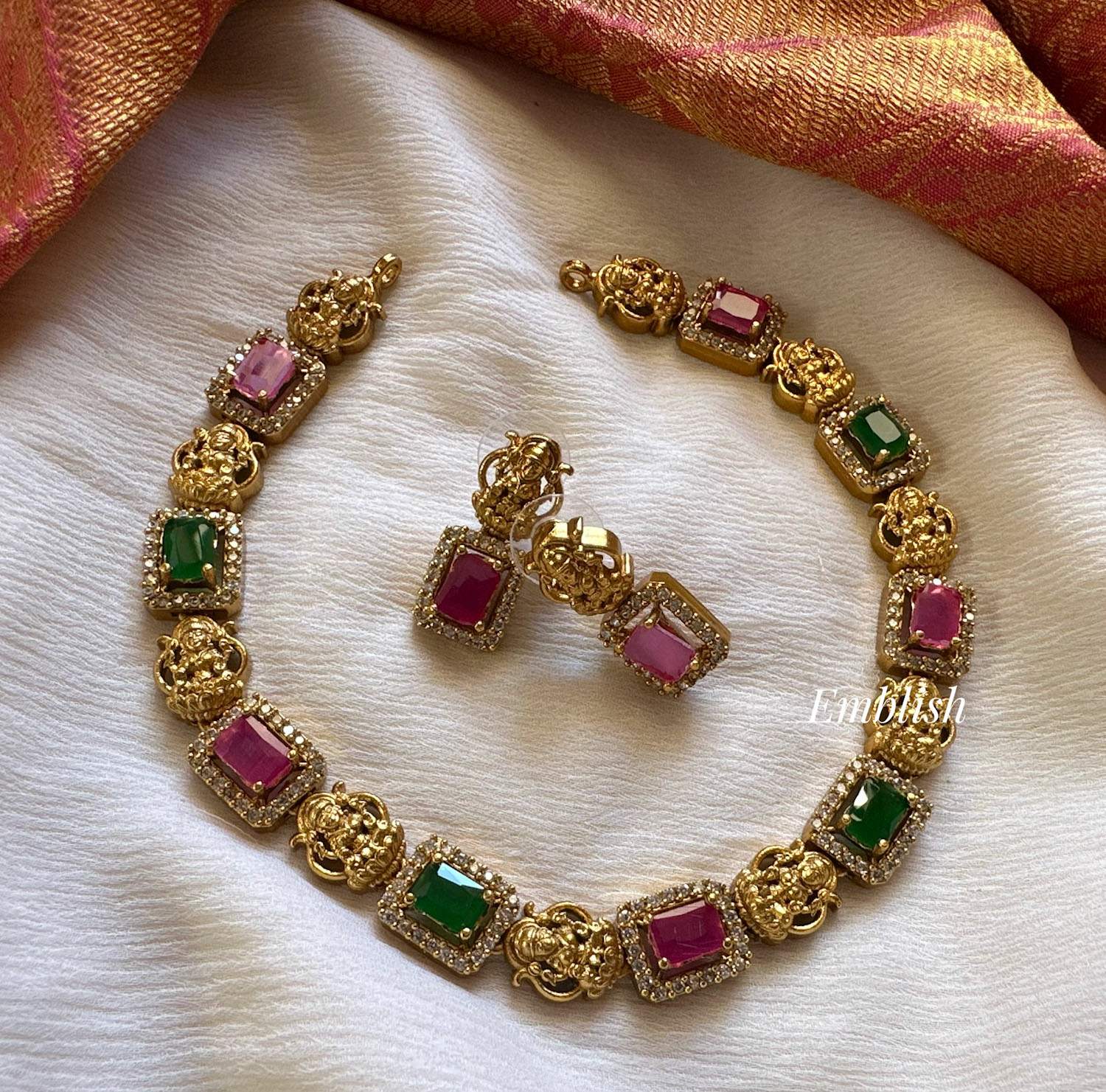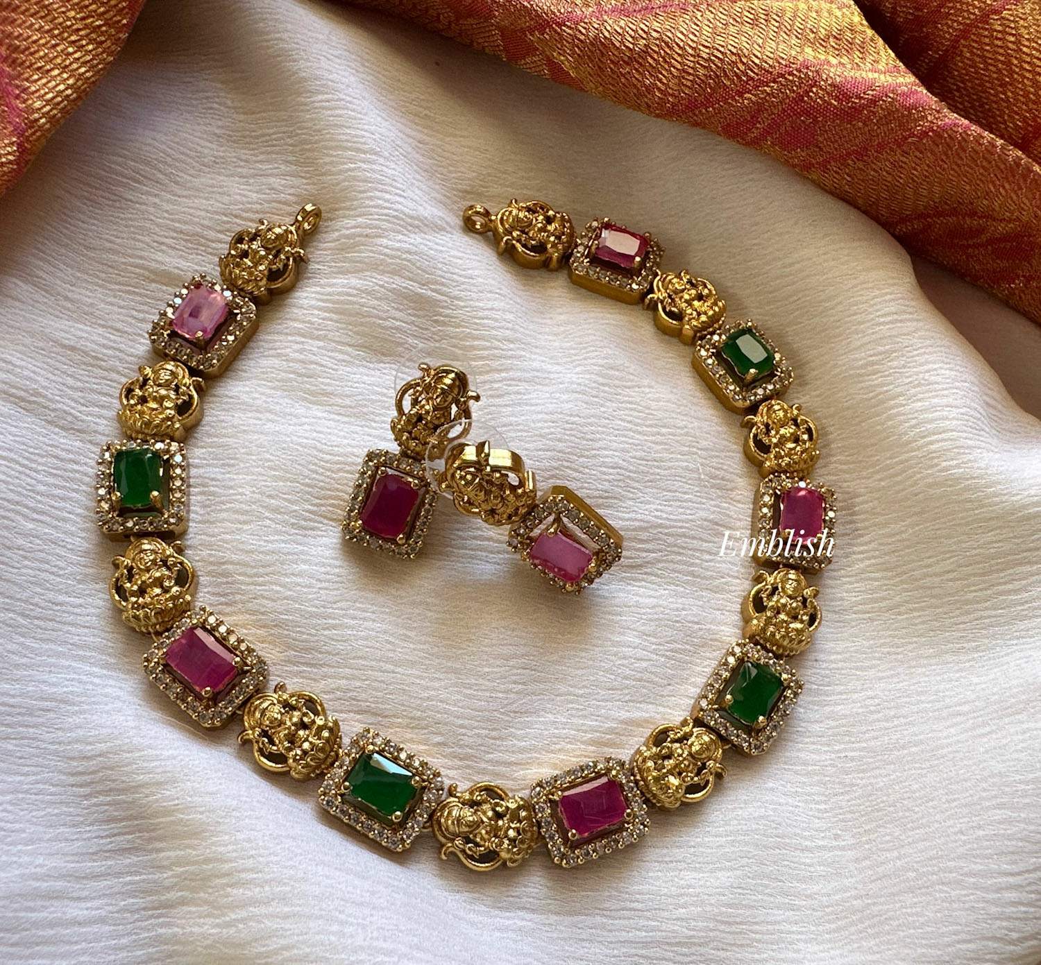Premium quality Brass made Ad stonesShort Neckpiece Price Mentioned for a set. ..