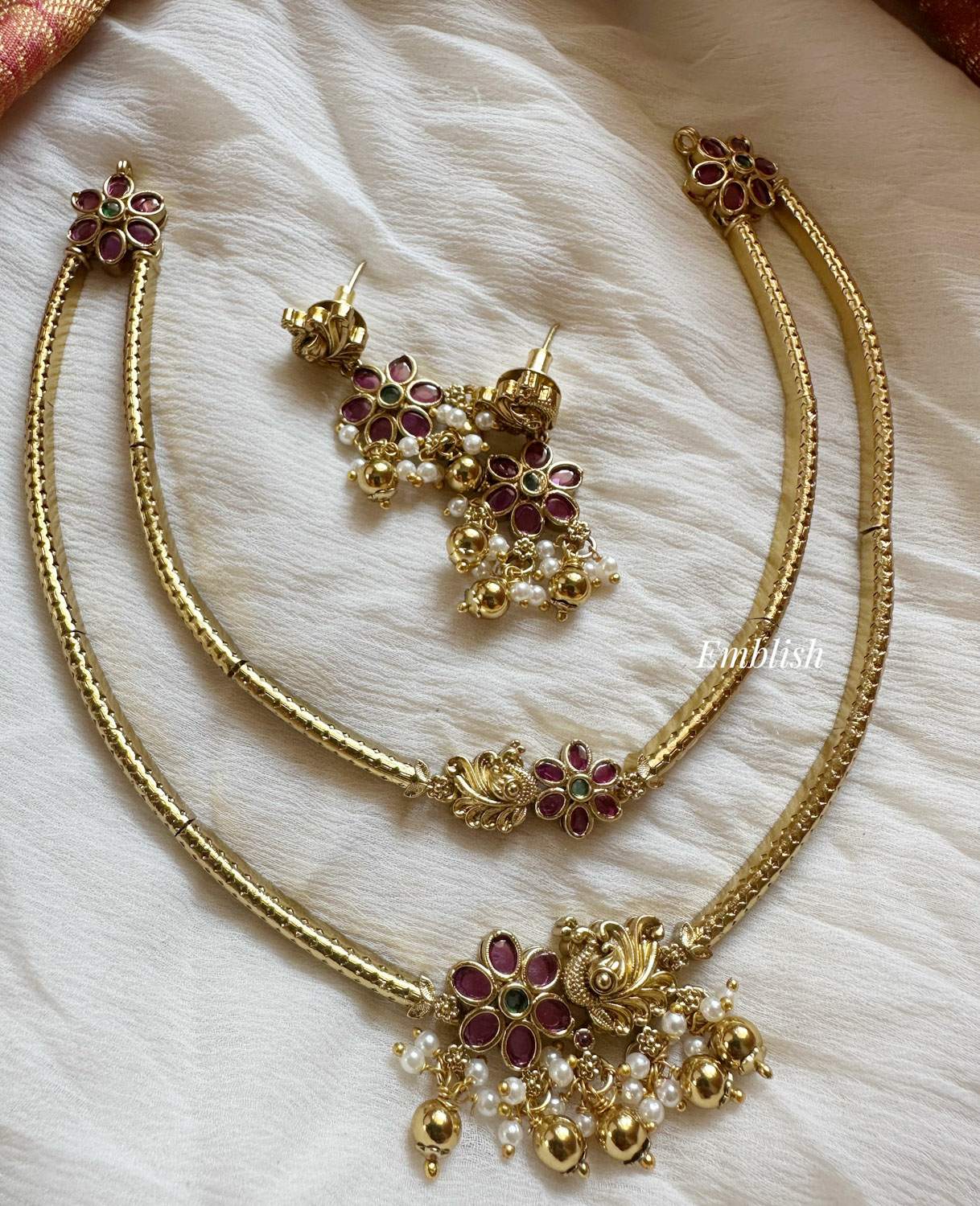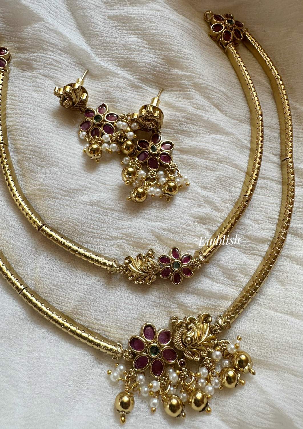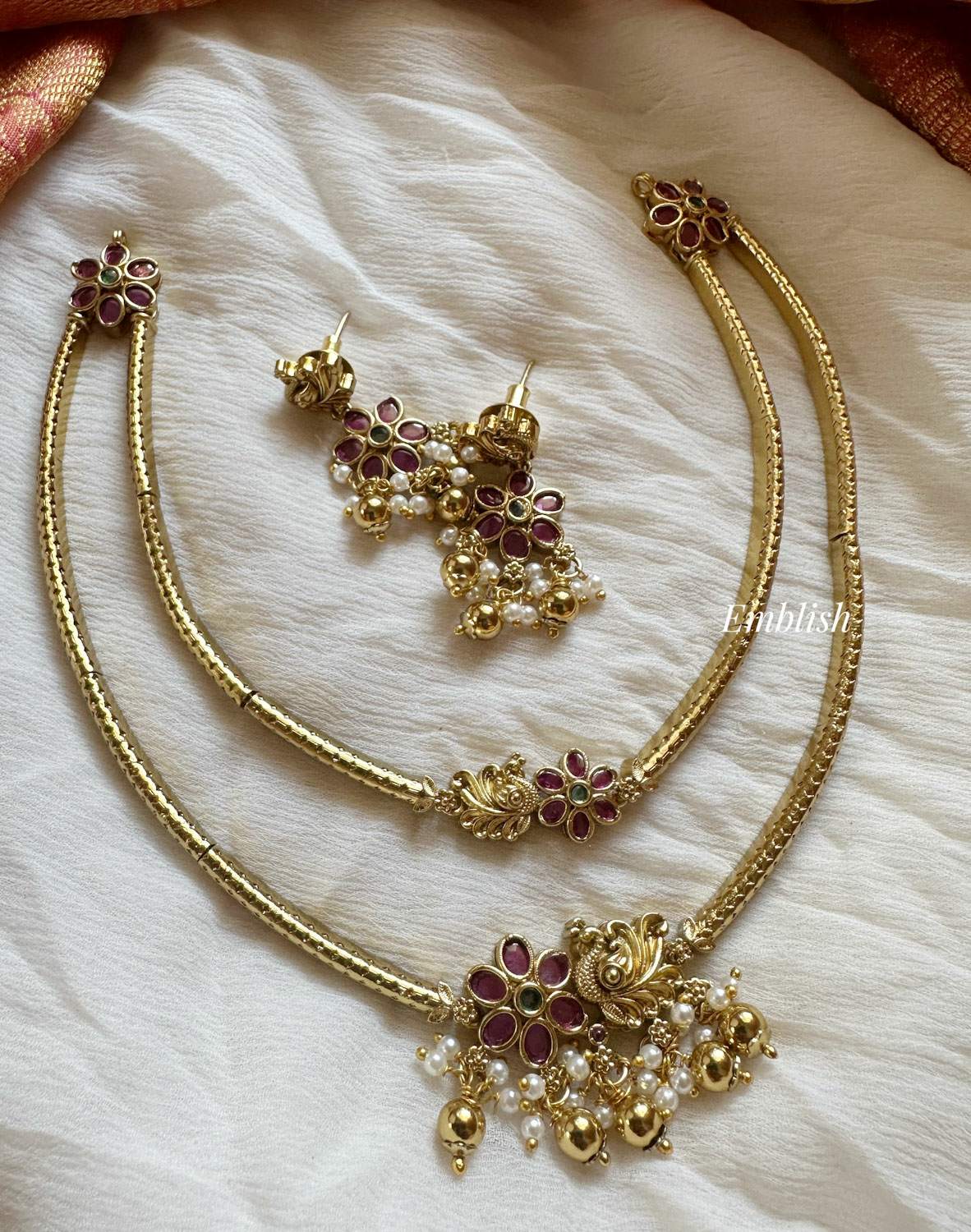 Premium quality Brass made Ad stonesShort Neckpiece Price Mentioned for a set. ..