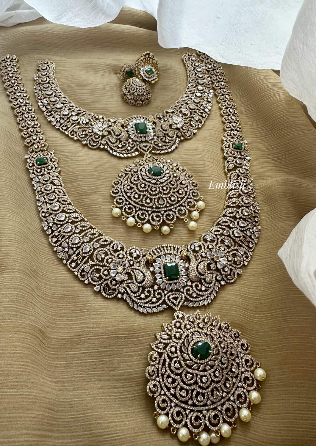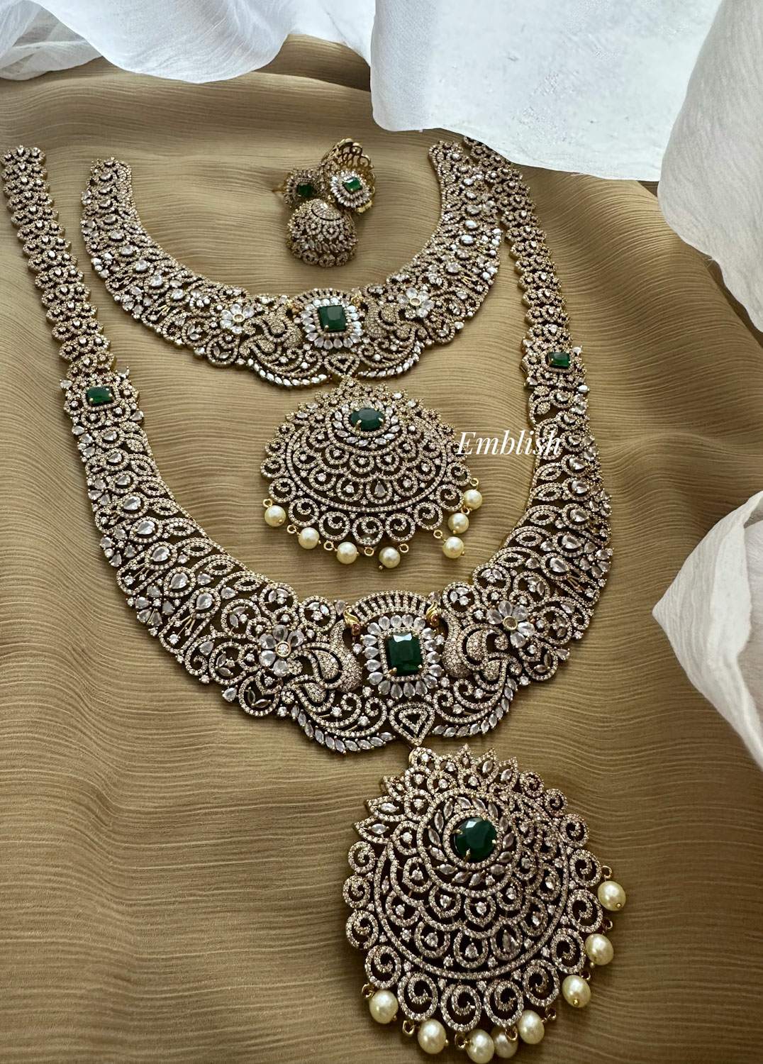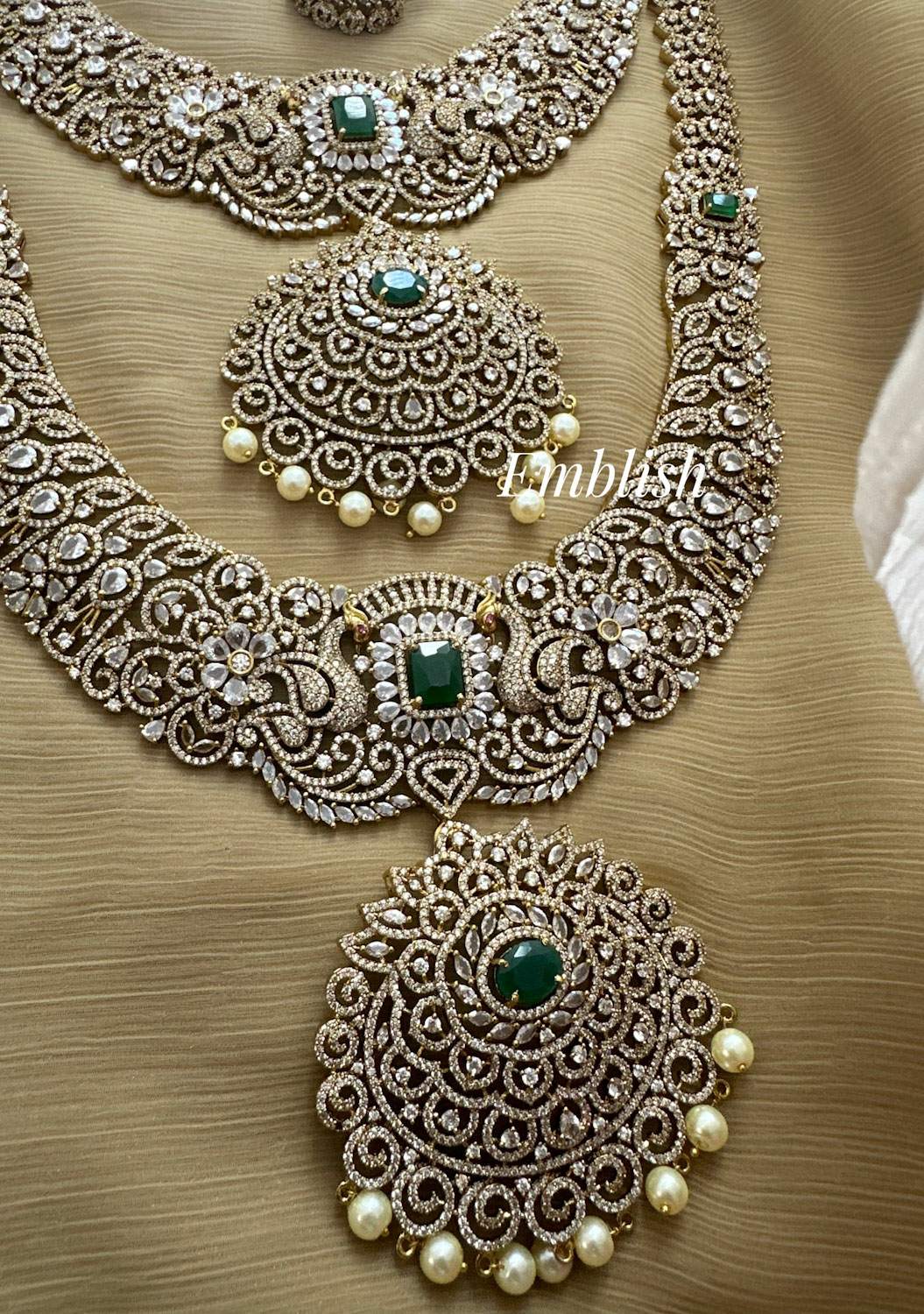 Royal AD Flower Pendant Peacock Pearl Drop Semi Bridal Set - Green