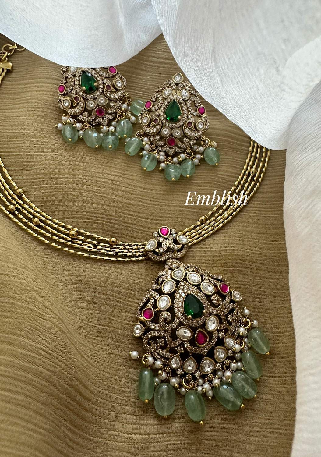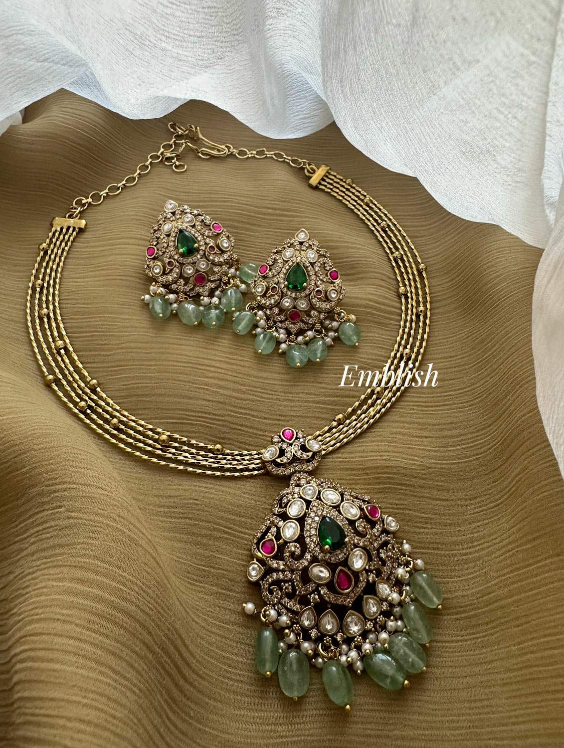 Premium quality Brass made Ad stonesShort Neckpiece Price Mentioned for a set. ..