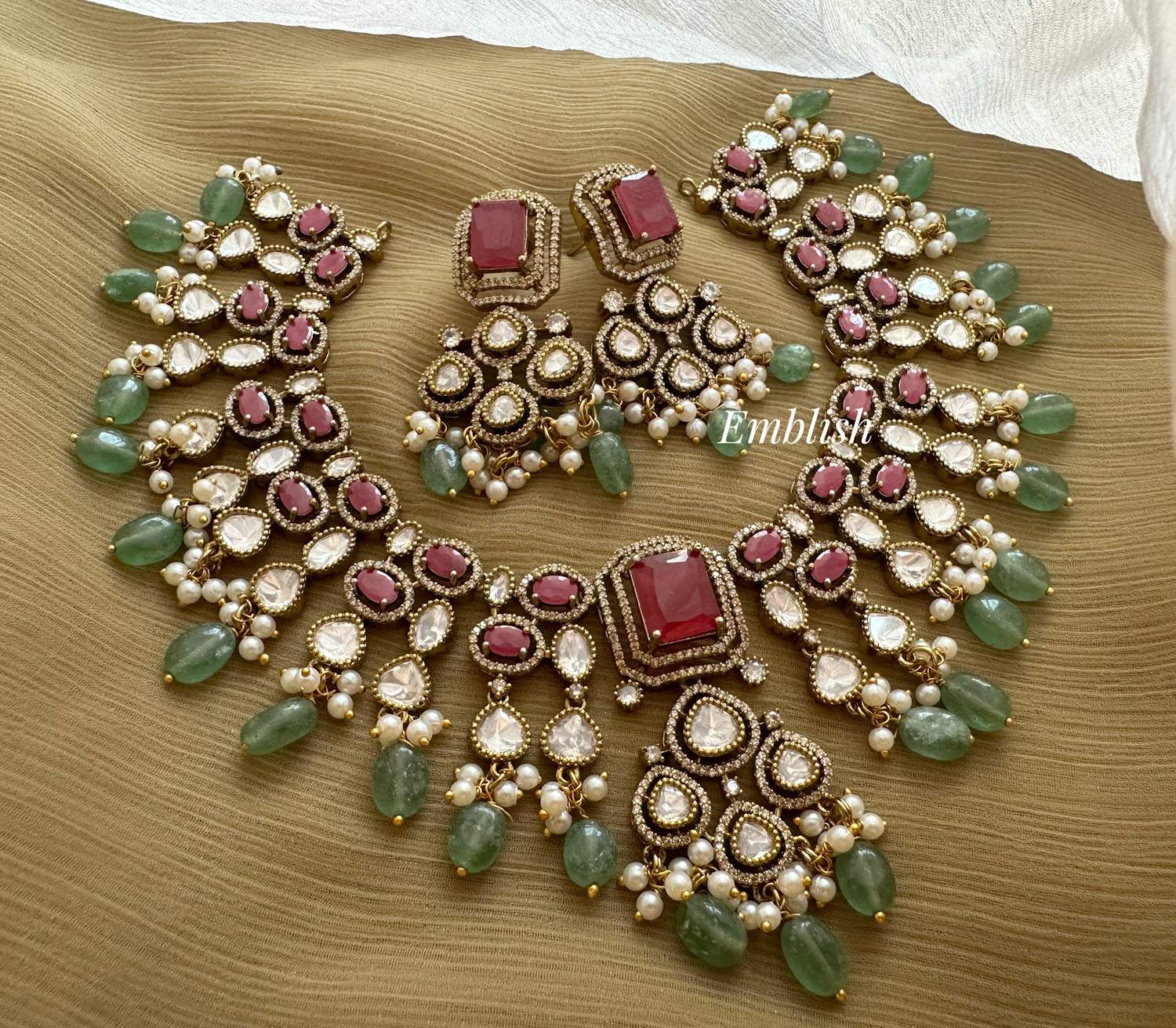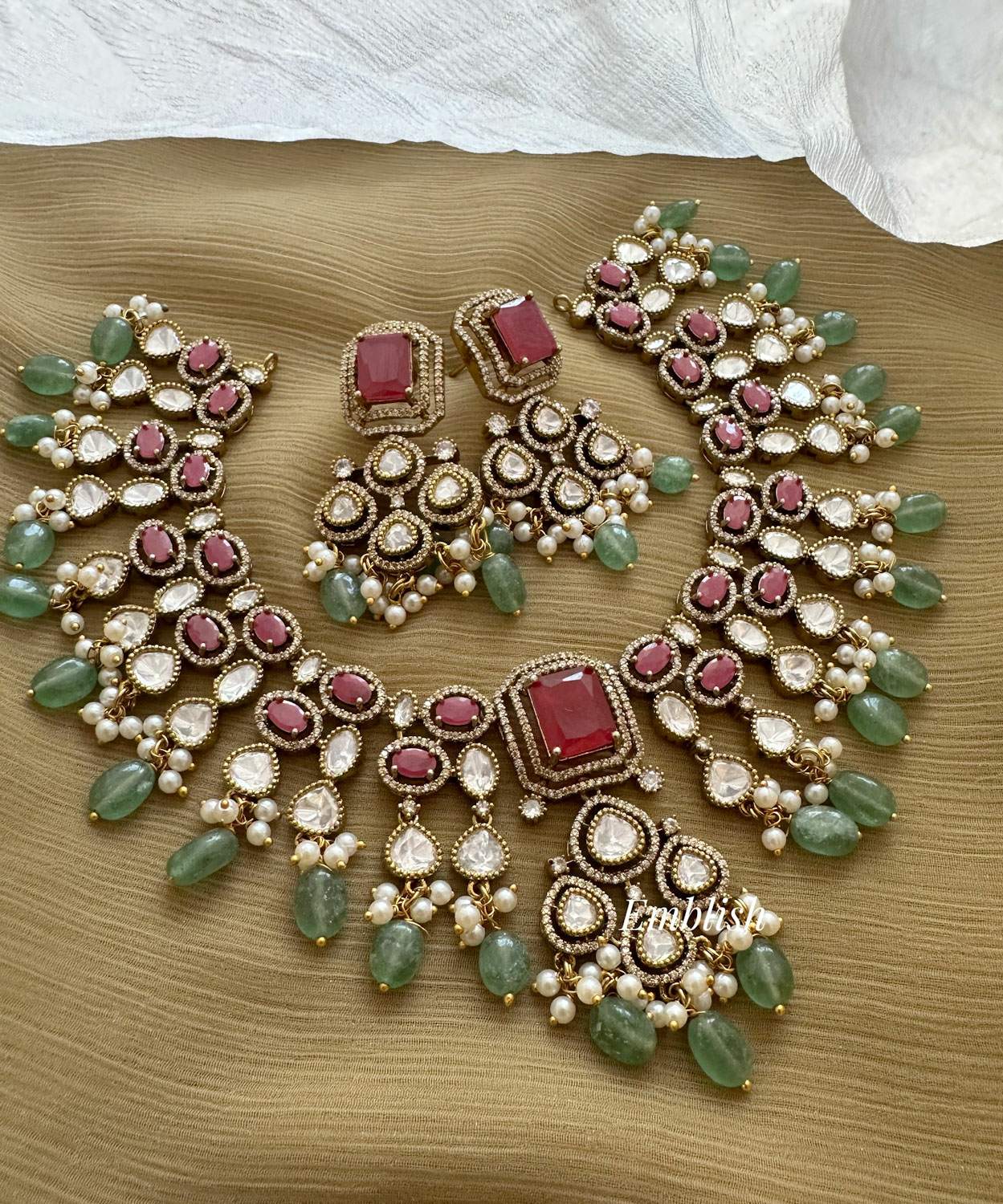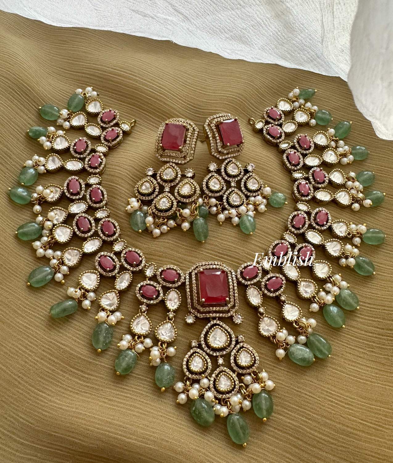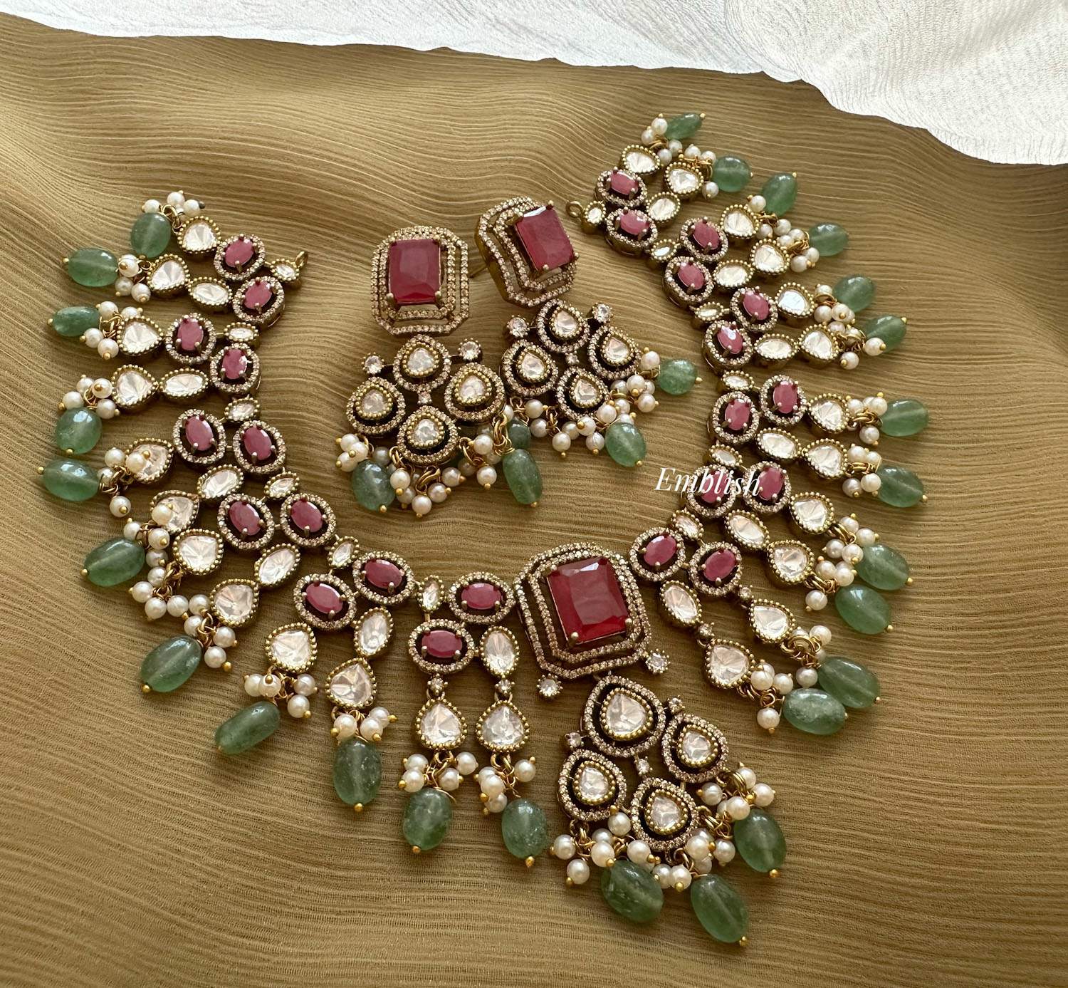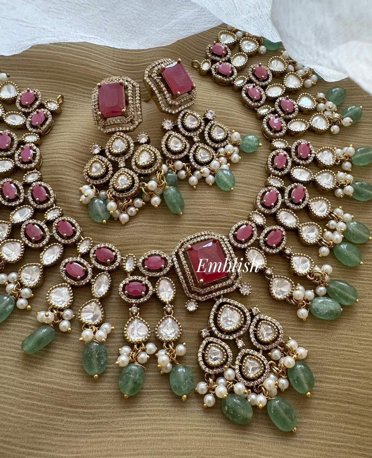 Premium quality Brass made Ad stonesShort Neckpiece Price Mentioned for a set. ..