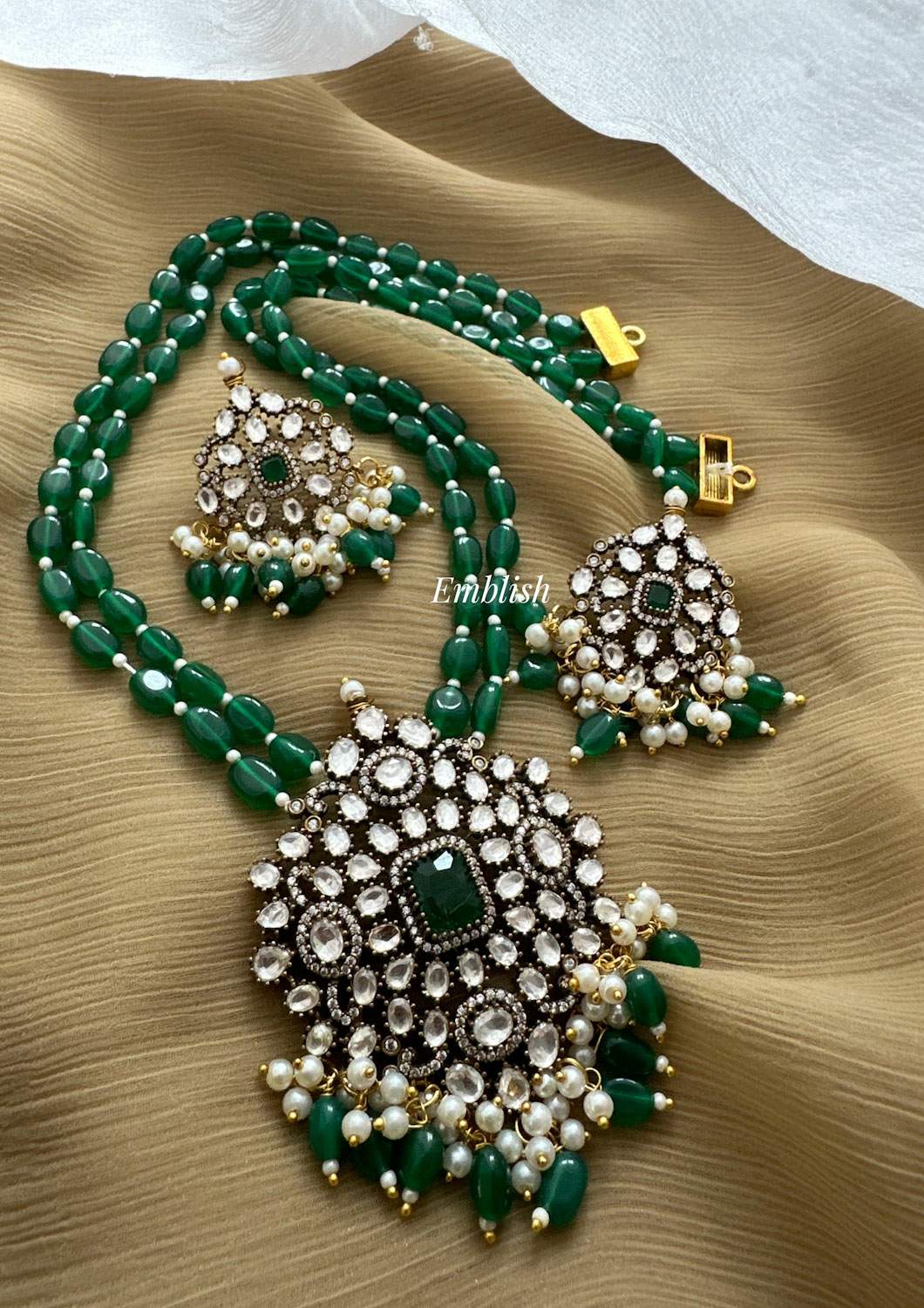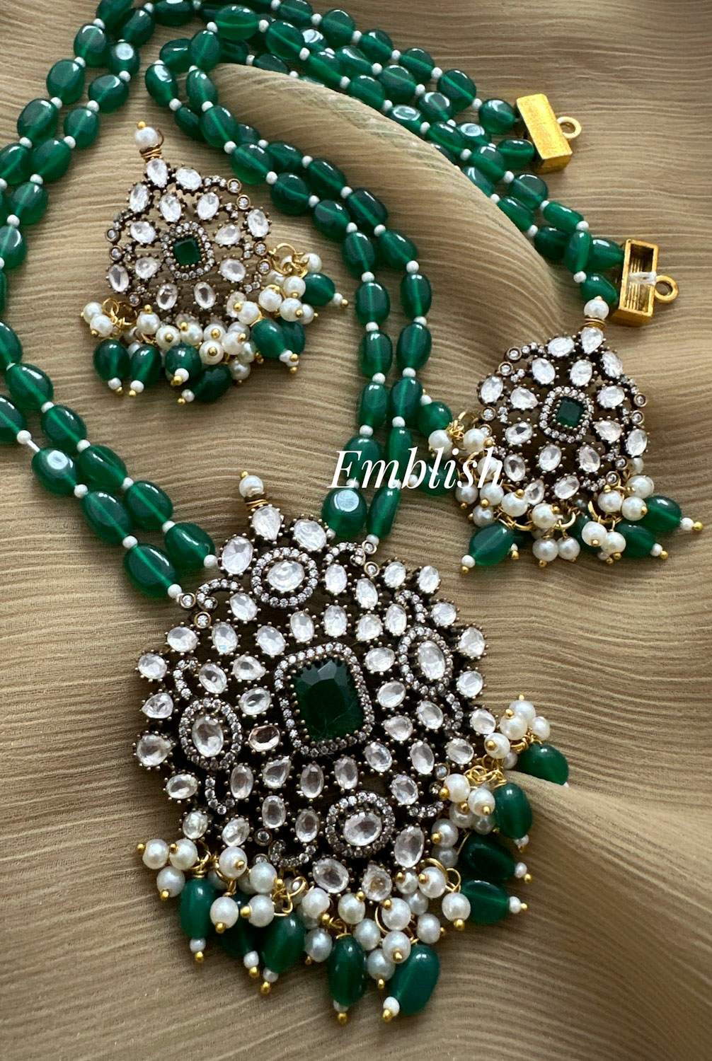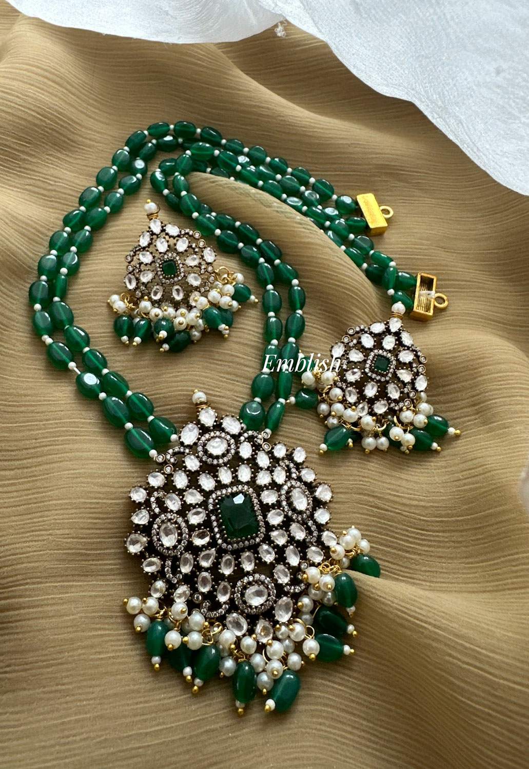Premium Quality.Brass Made.Victorian Stones.Pearl Mala Set.Price Mentioned for a Set..