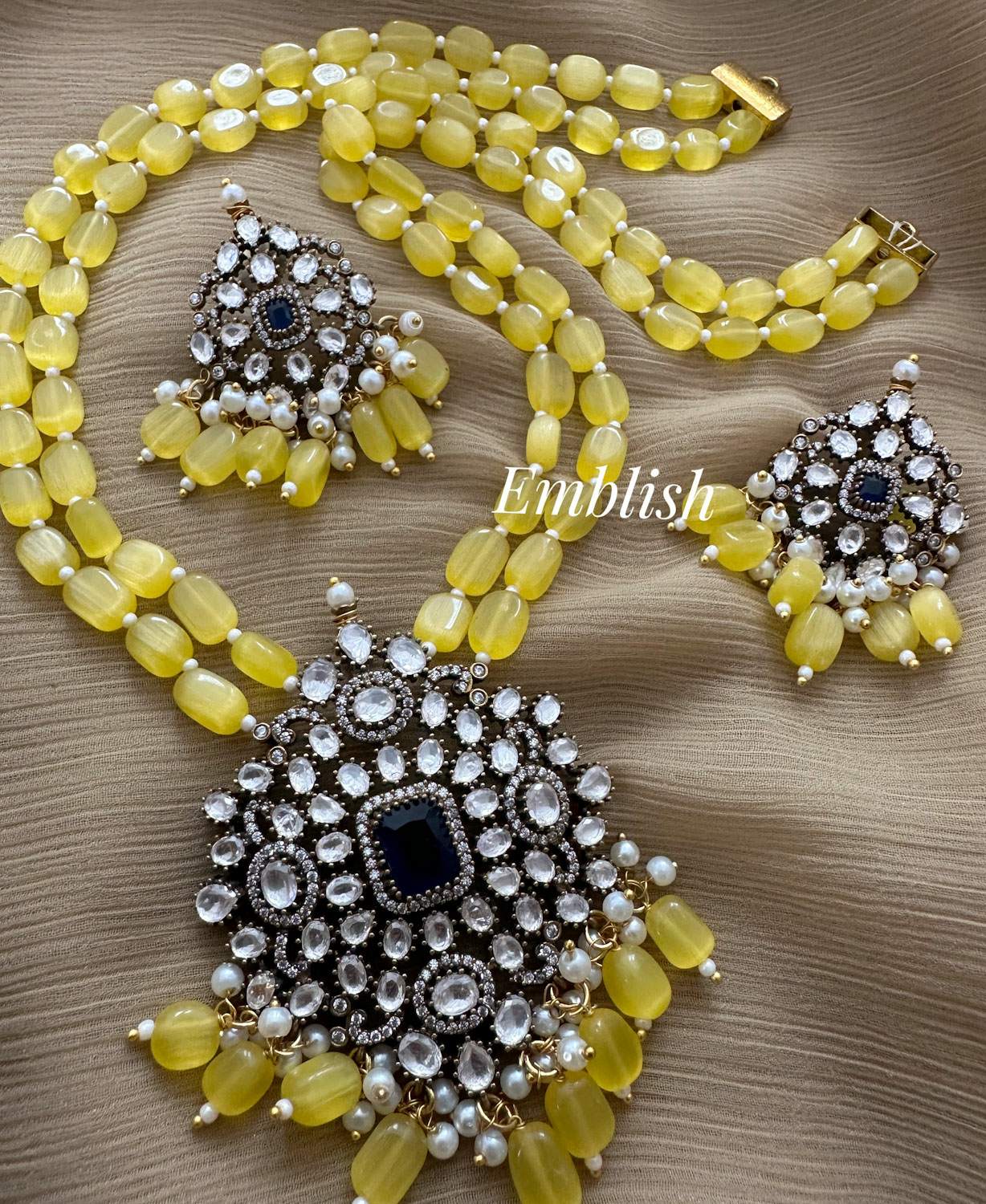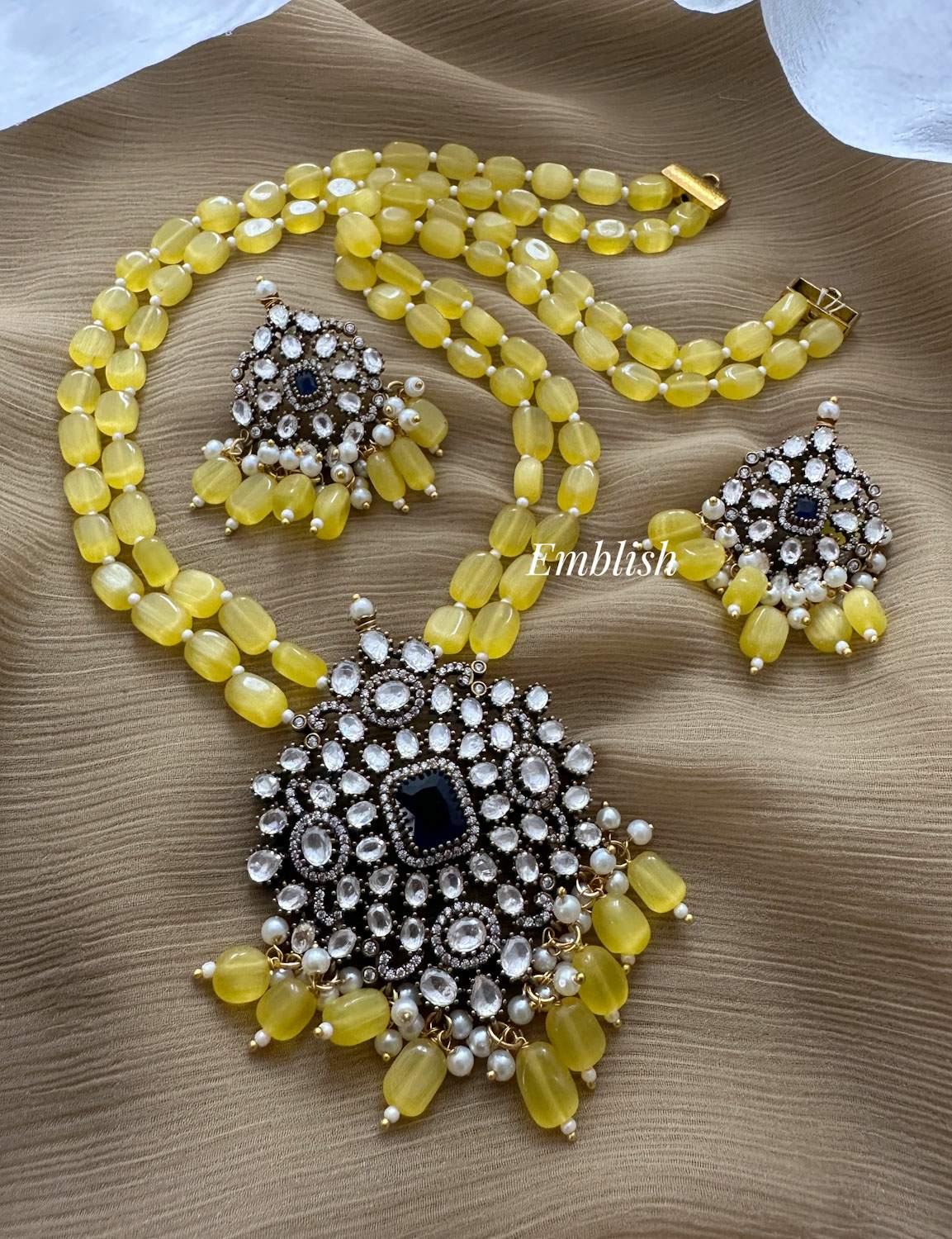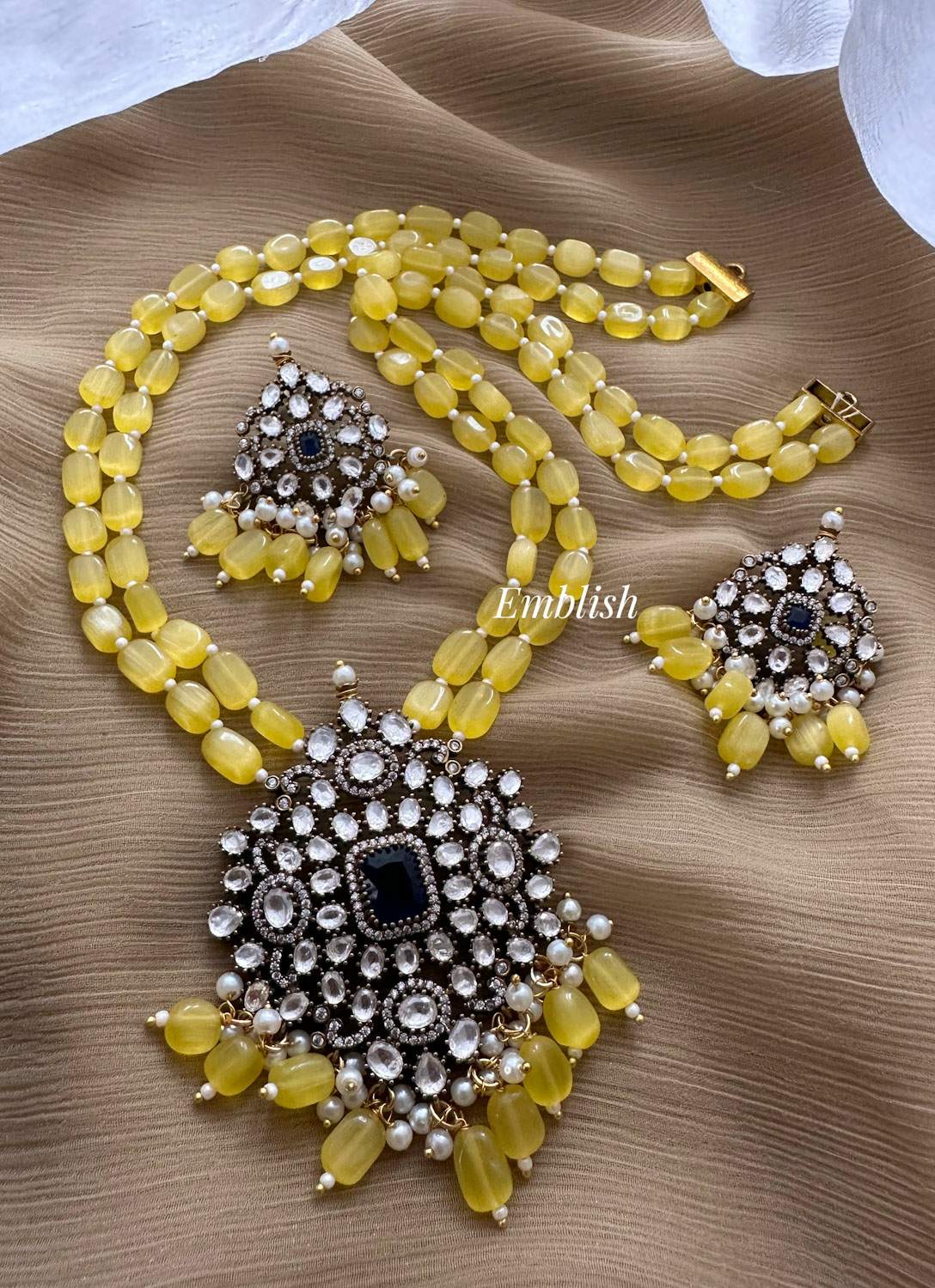 Premium Quality.Brass Made.Victorian Stones.Pearl Mala Set.Price Mentioned for a Set..