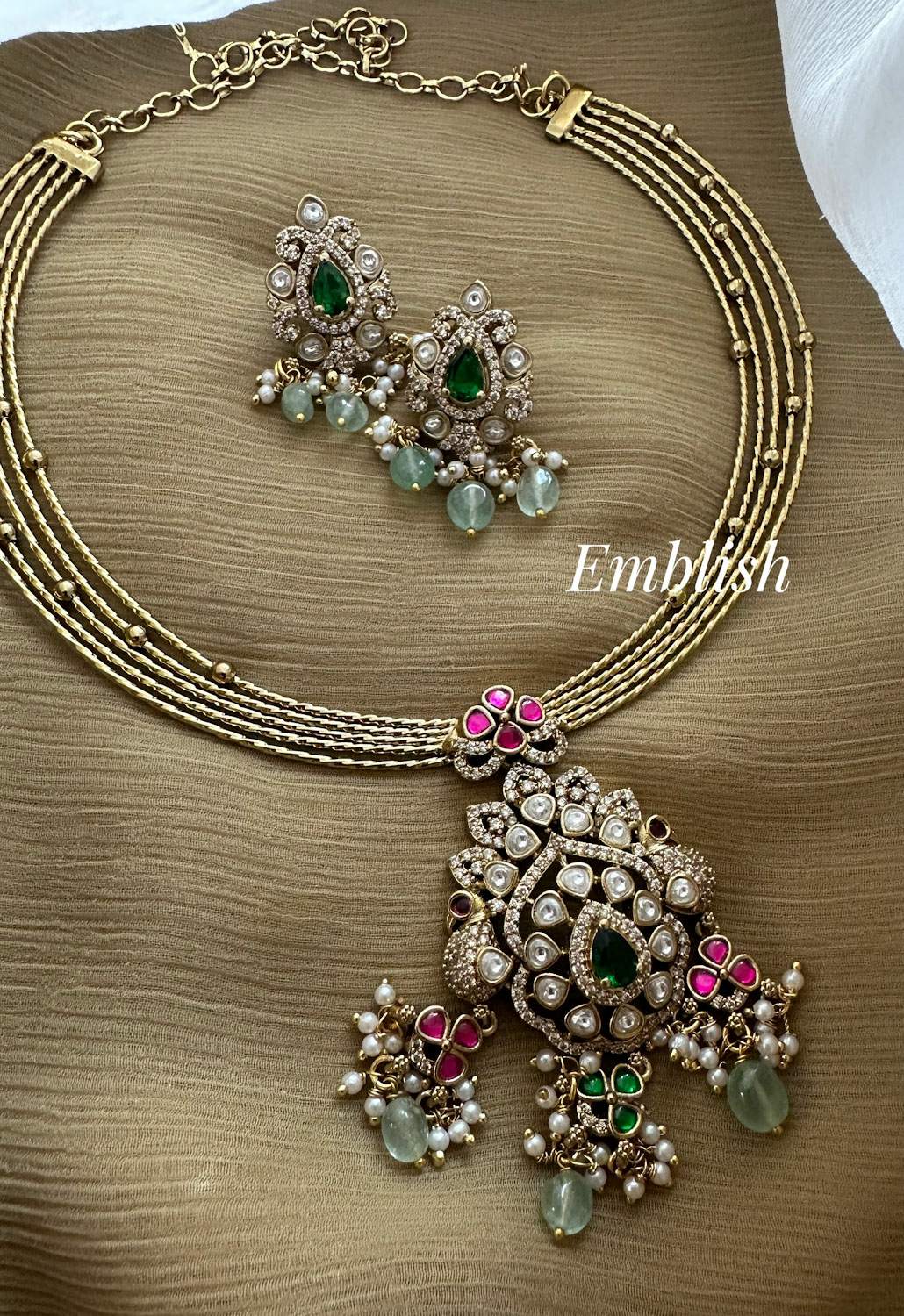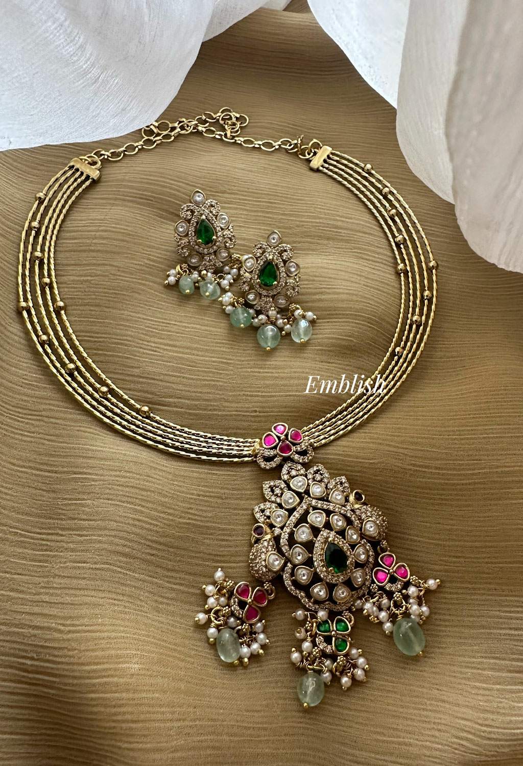 Premium quality Brass made Ad stonesShort Neckpiece Price Mentioned for a set. ..