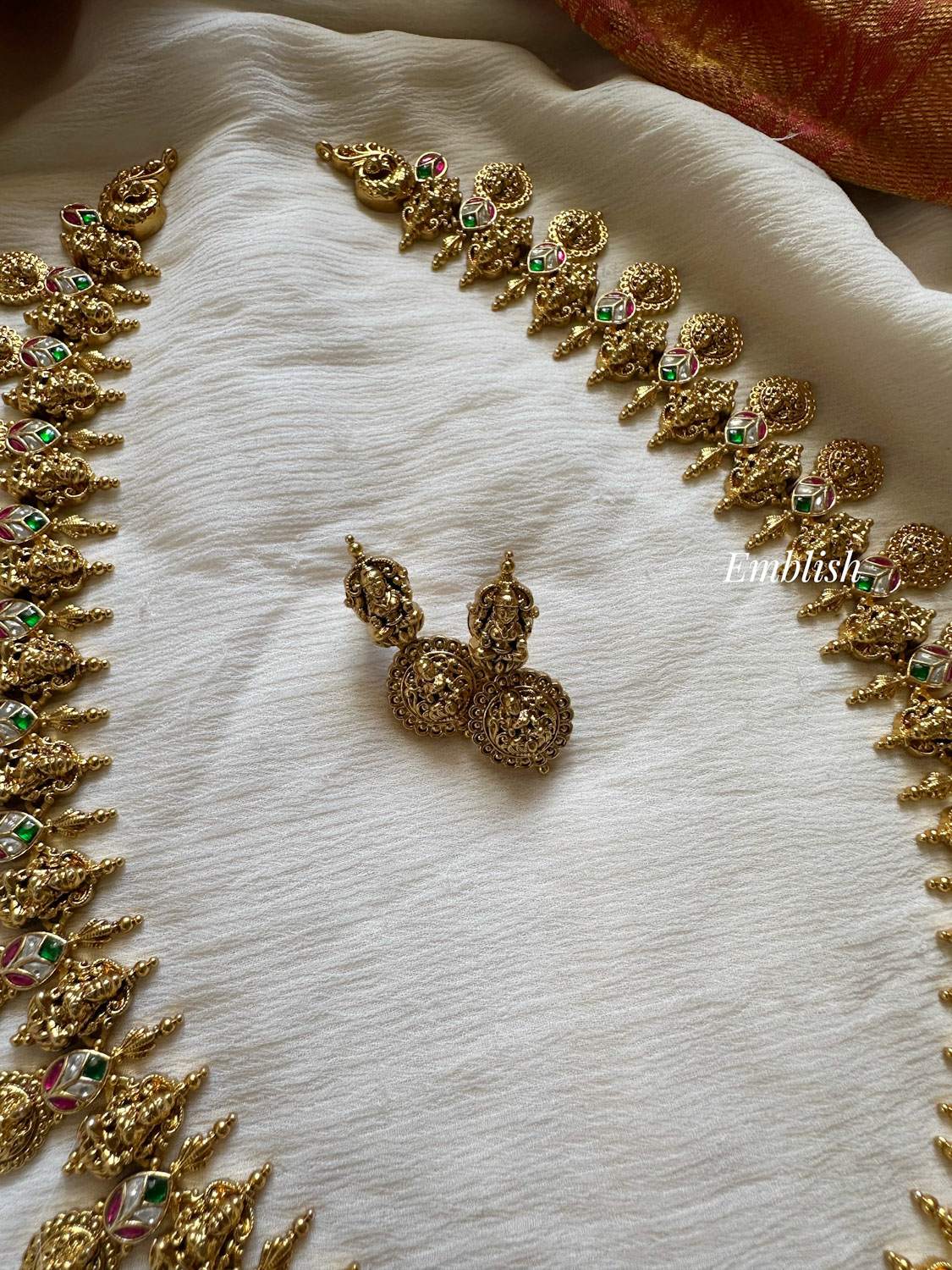 Premium Quality Brass Made.Antique FinishAD StonesShort NeckpiecePearl BeadsPurplePrice M..