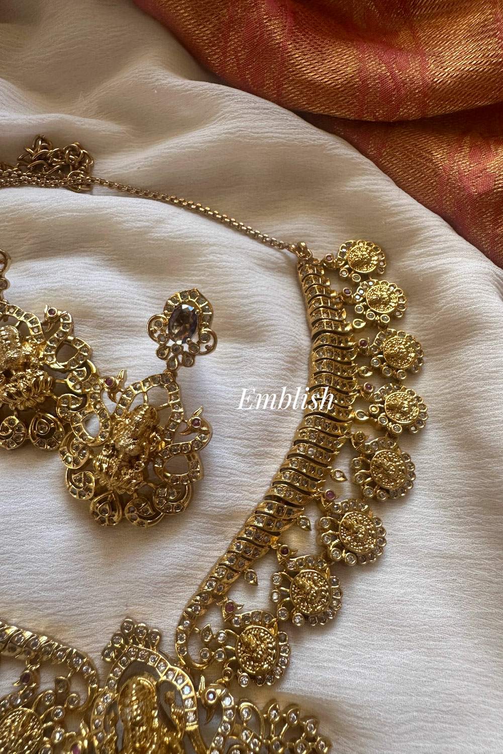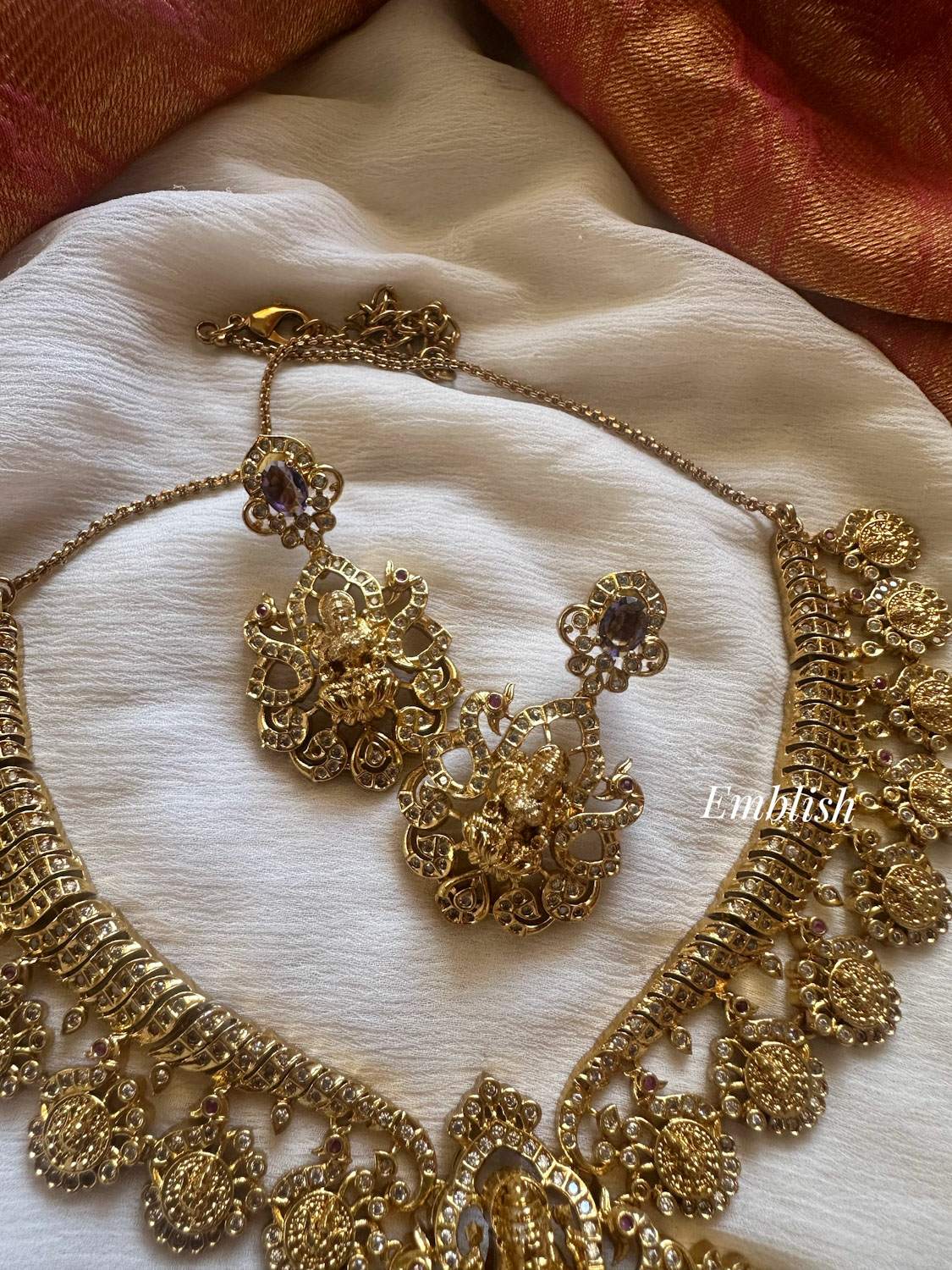 Premium qualityGold alike. Brass made .Short neckpiece. Comes with light weight pair of me..