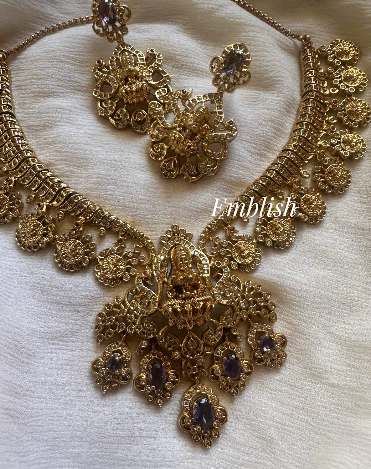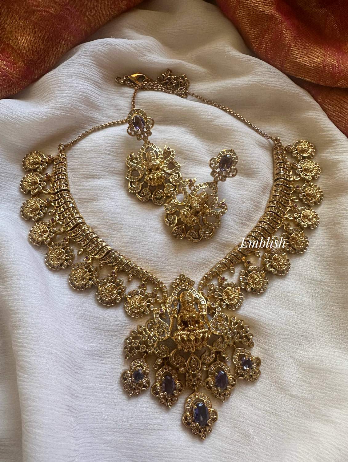 Premium Quality Brass Made.Antique FinishAD StonesShort NeckpiecePearl BeadsPurplePrice M..