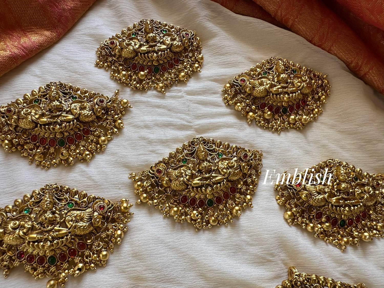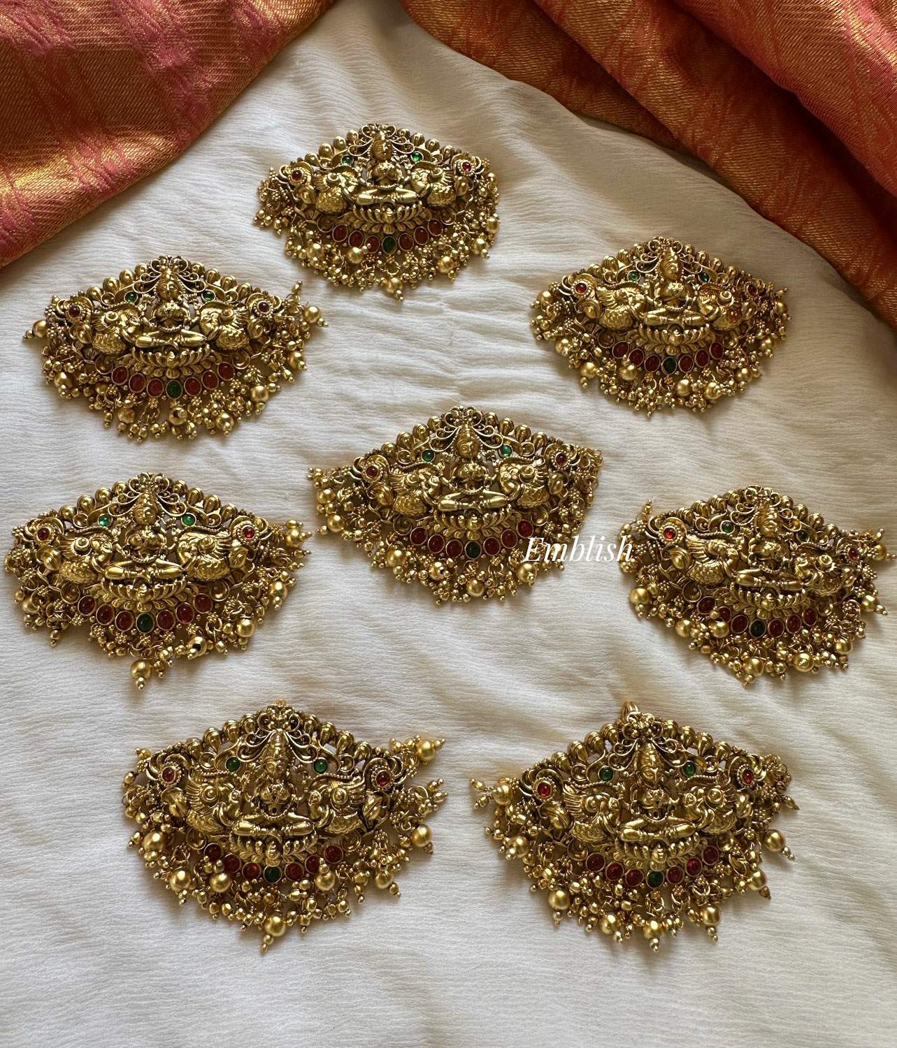 Premium Quality.Brass Made.AD Stones.Red with Green.Jada Billa / Hair ChotiGold Beads.Price Mentione..