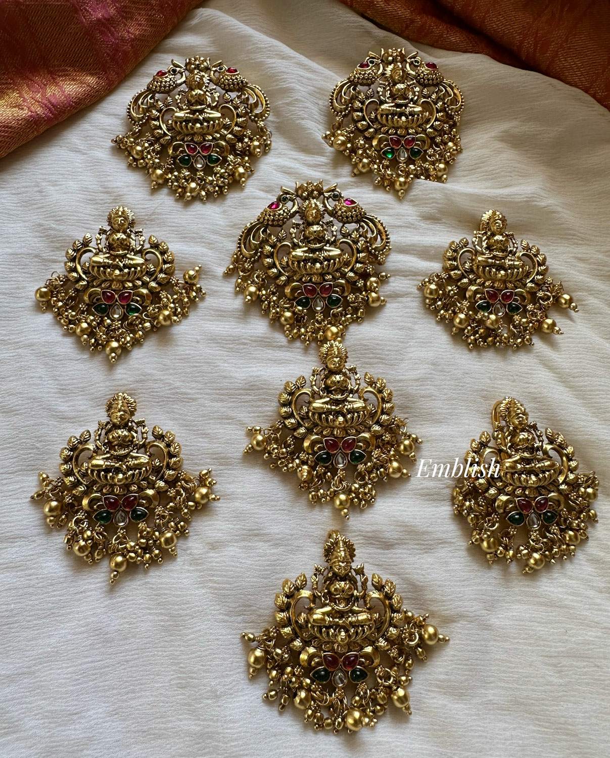Premium Quality.Brass Made.AD Stones.Red with Green.Jada Billa / Hair ChotiGold Beads.Price Mentione..