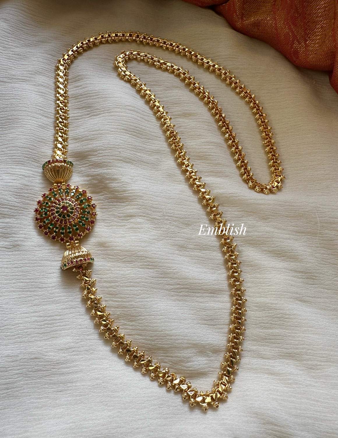 Premium Quality.Brass Made.AD Stones.Red with Green.Jada Billa / Hair ChotiGold Beads.Price Mentione..