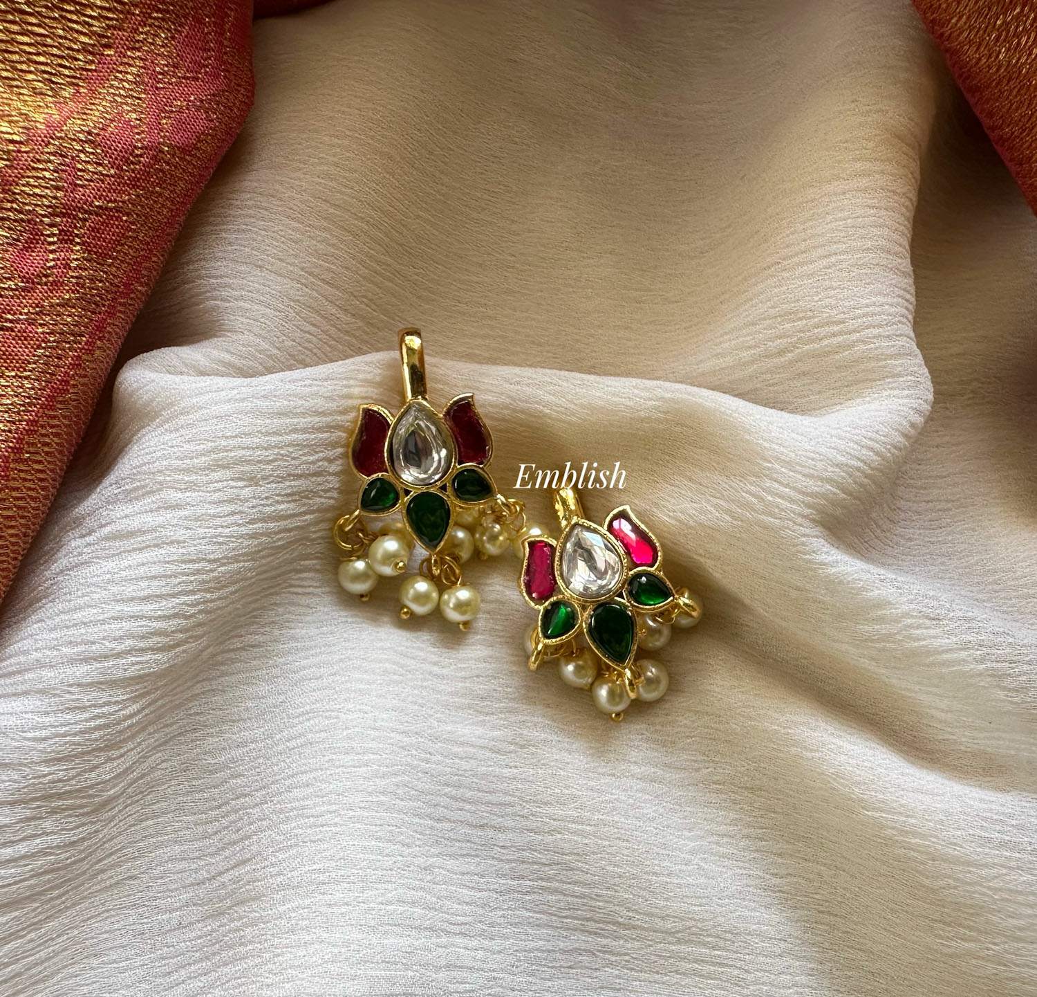 Premium Quality.Kundan Stone.Pink with Green.Length : 4 cm.Price Mentioned for a pair...