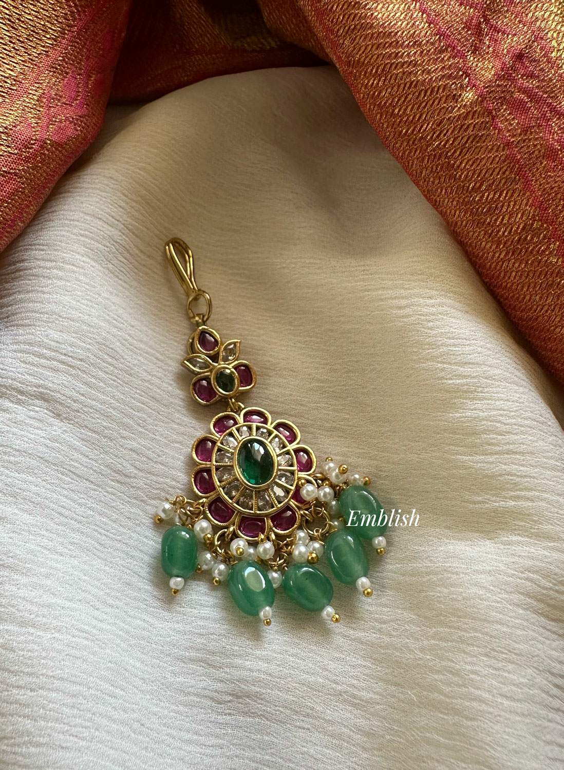 Premium Quality.Brass Made.AD Stones.Red with Green.Jada Billa / Hair ChotiGold Beads.Price Mentione..