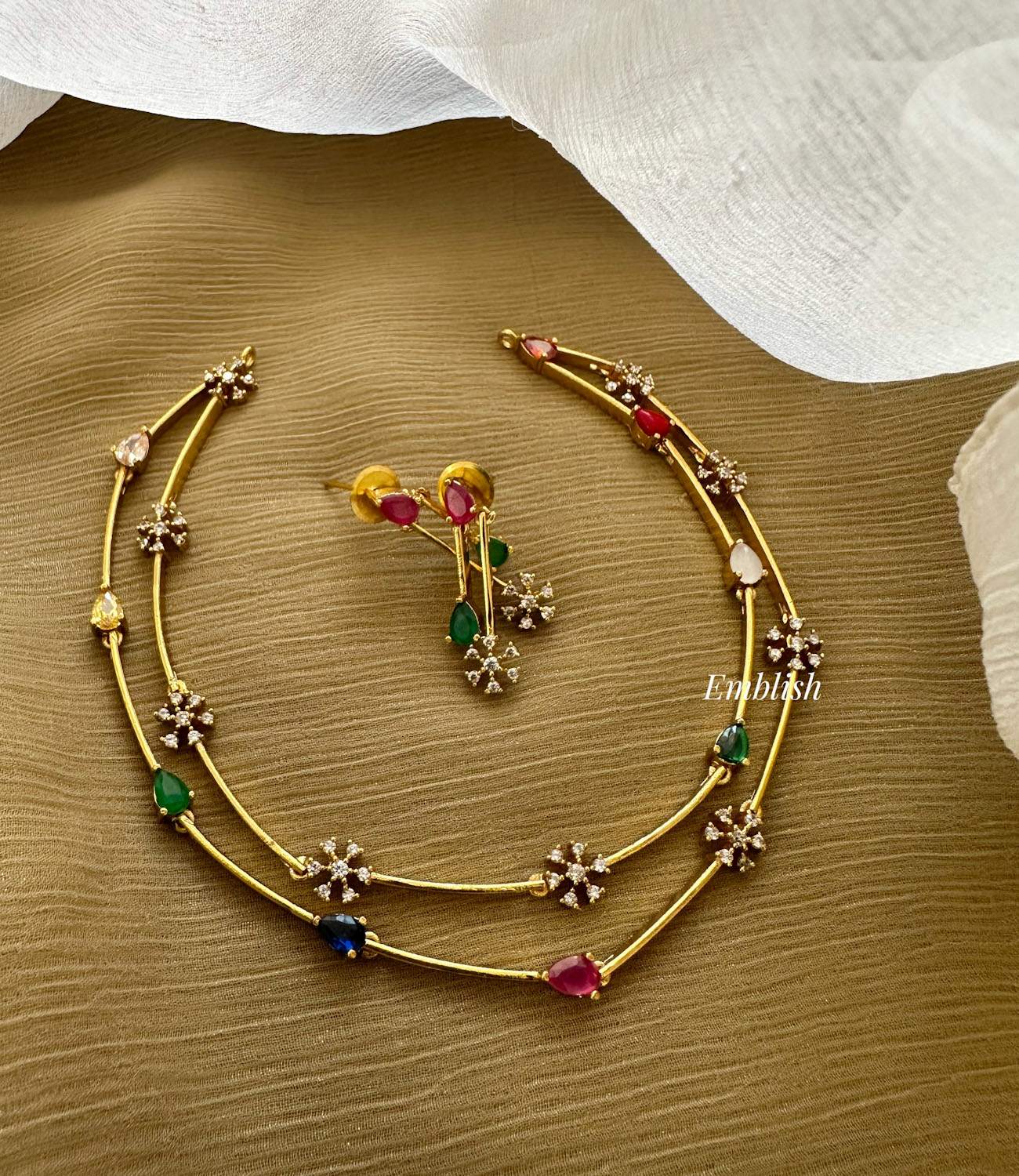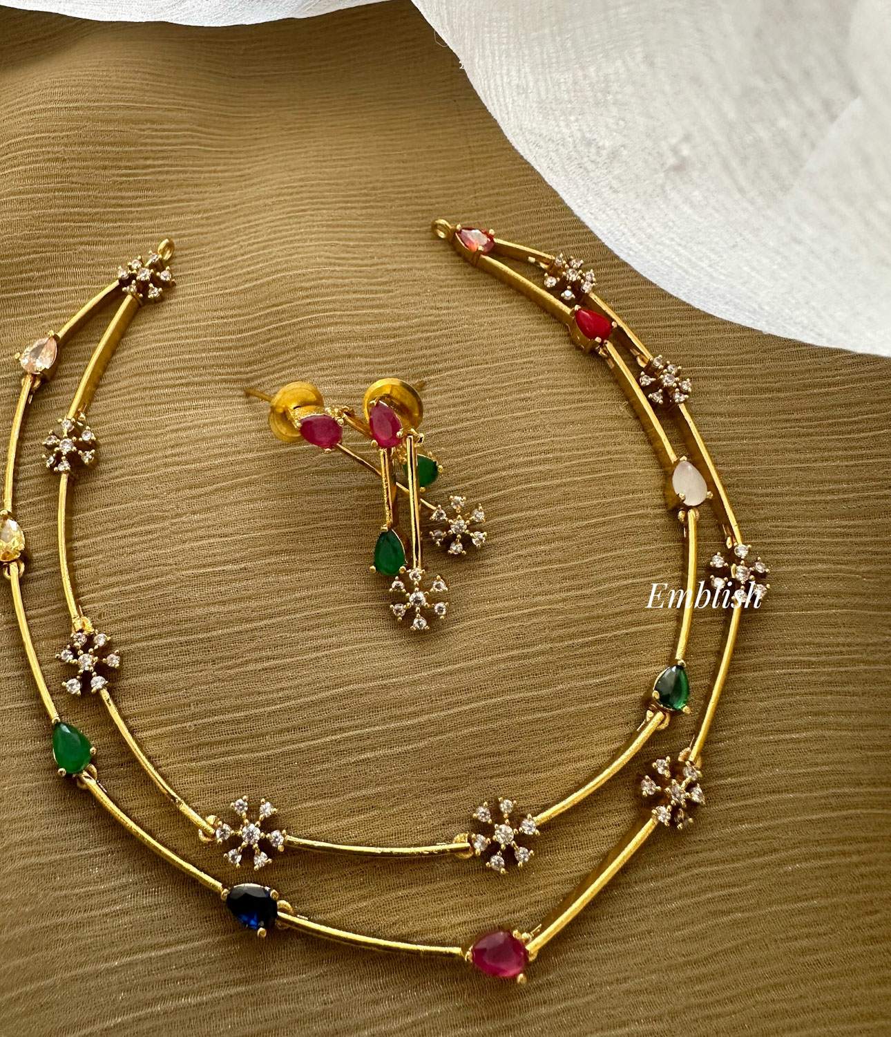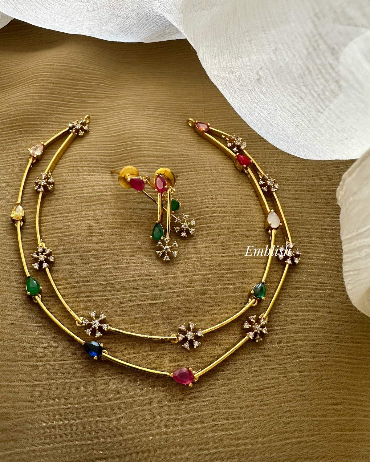 Premium quality. Midlenght neckpiece. Gold alike. Brasd made .Ad stones.Price mentioned is for the f..