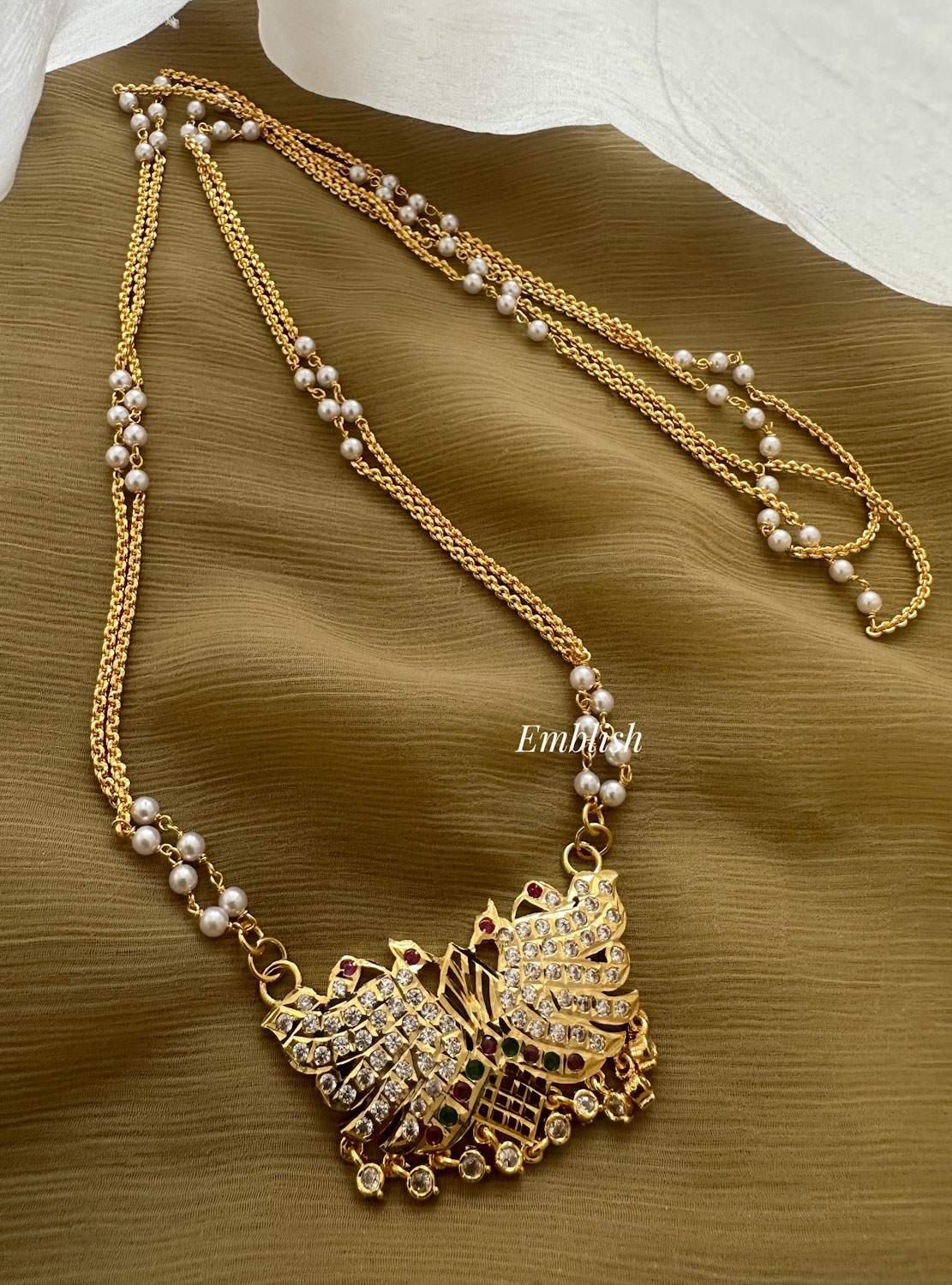 Premium QualityBrass MadeImponLength 30 InchRed , Green and WhitePrice Mentioned for a Neckpiece..
