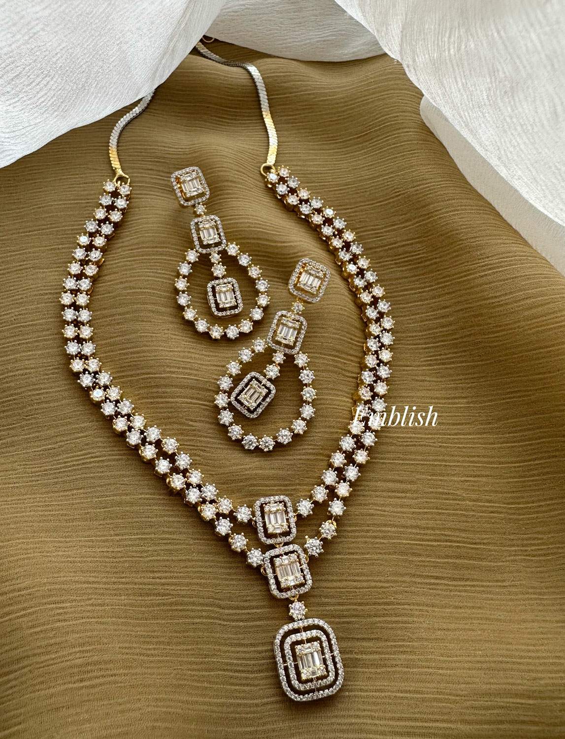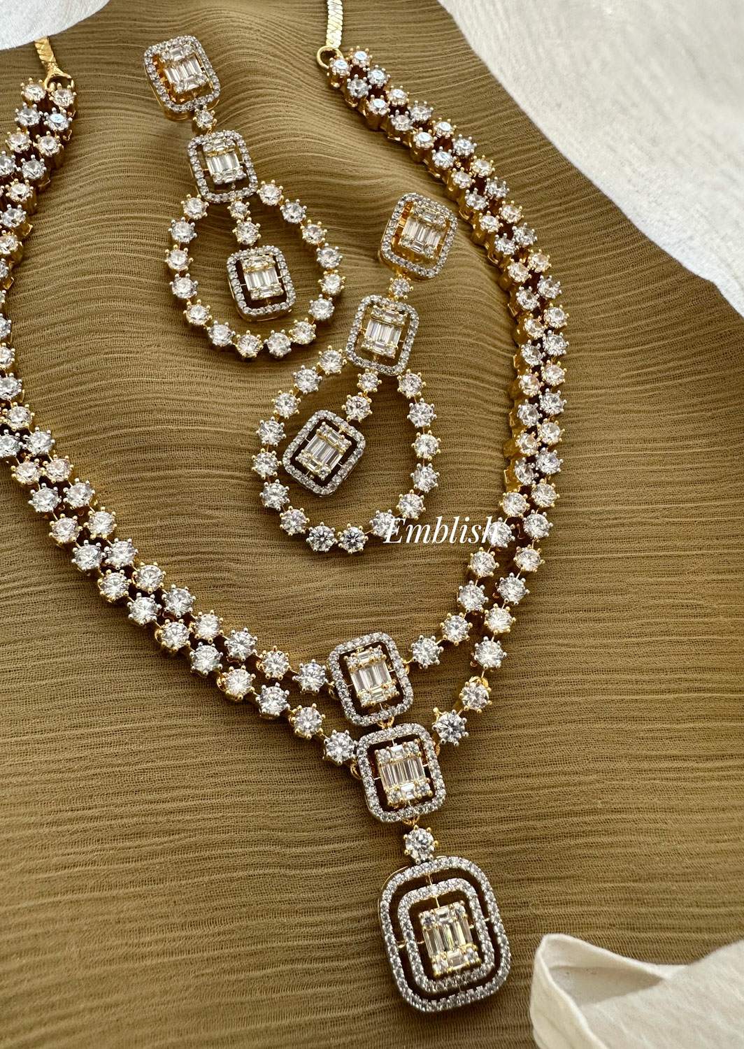 Premium QualityBrass MadeAD StonesShort NeckpiecePrice Mentioned for a Set..