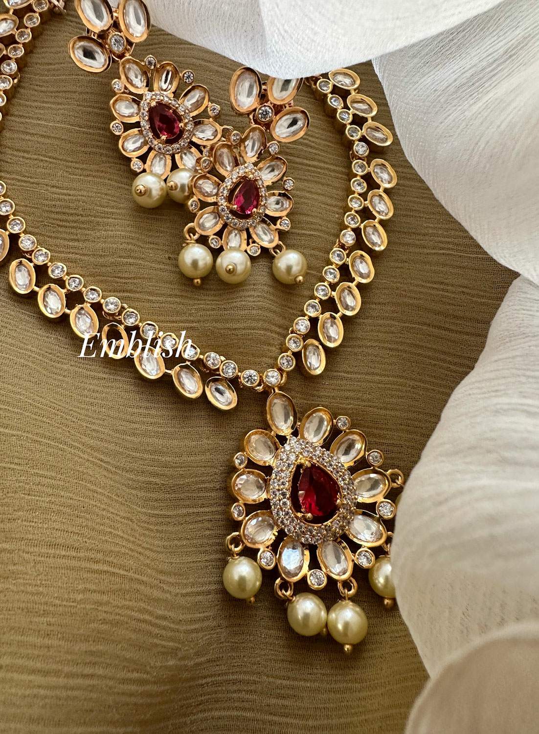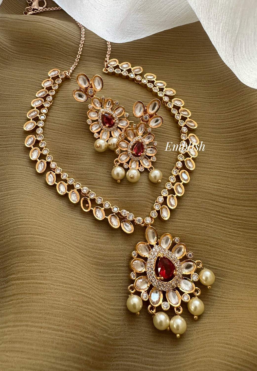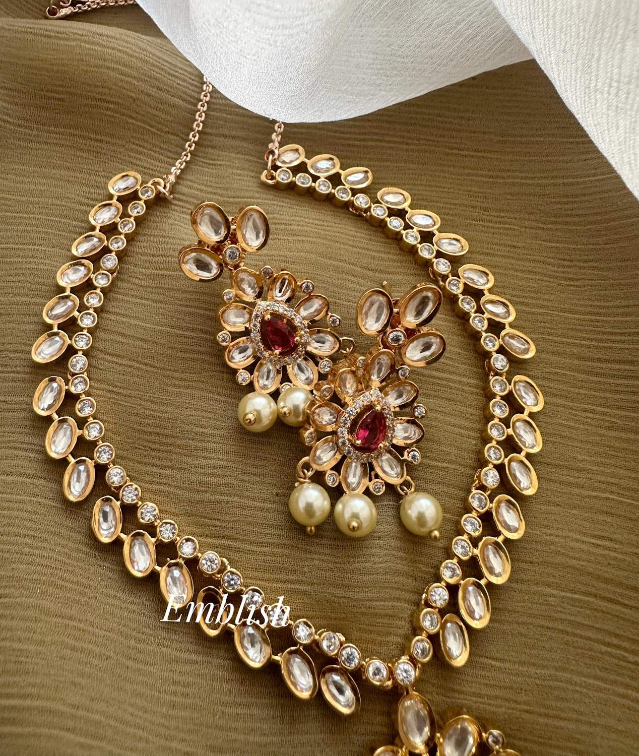 Premium Quality.Brass Made.AD Stones.Rosegold.High Neck Choker.Price mentioned for a set...