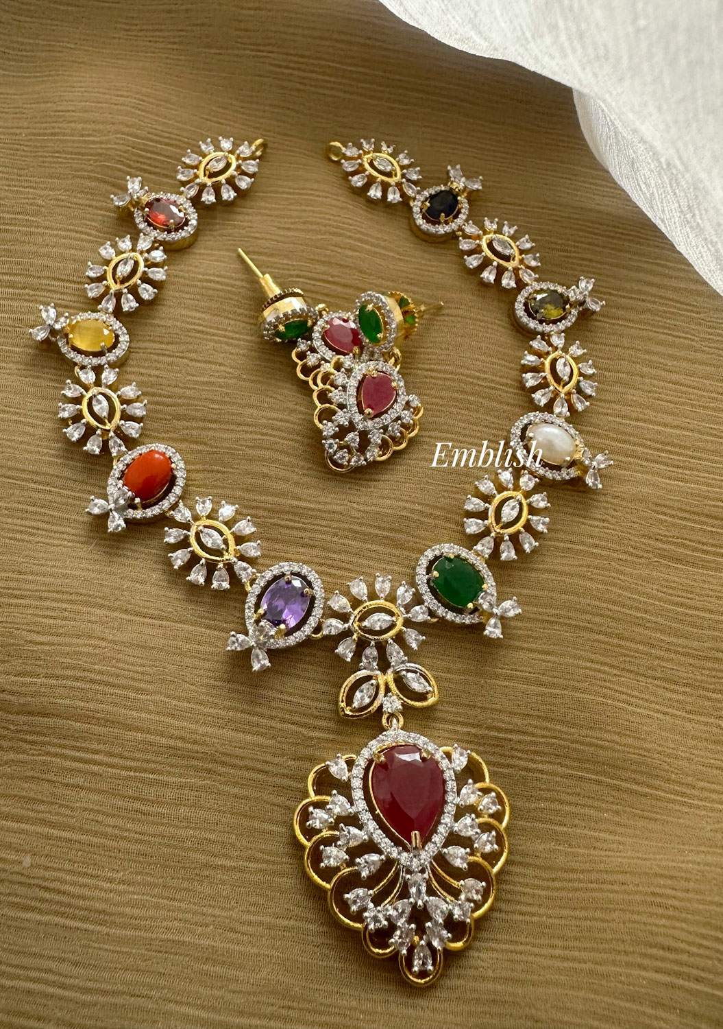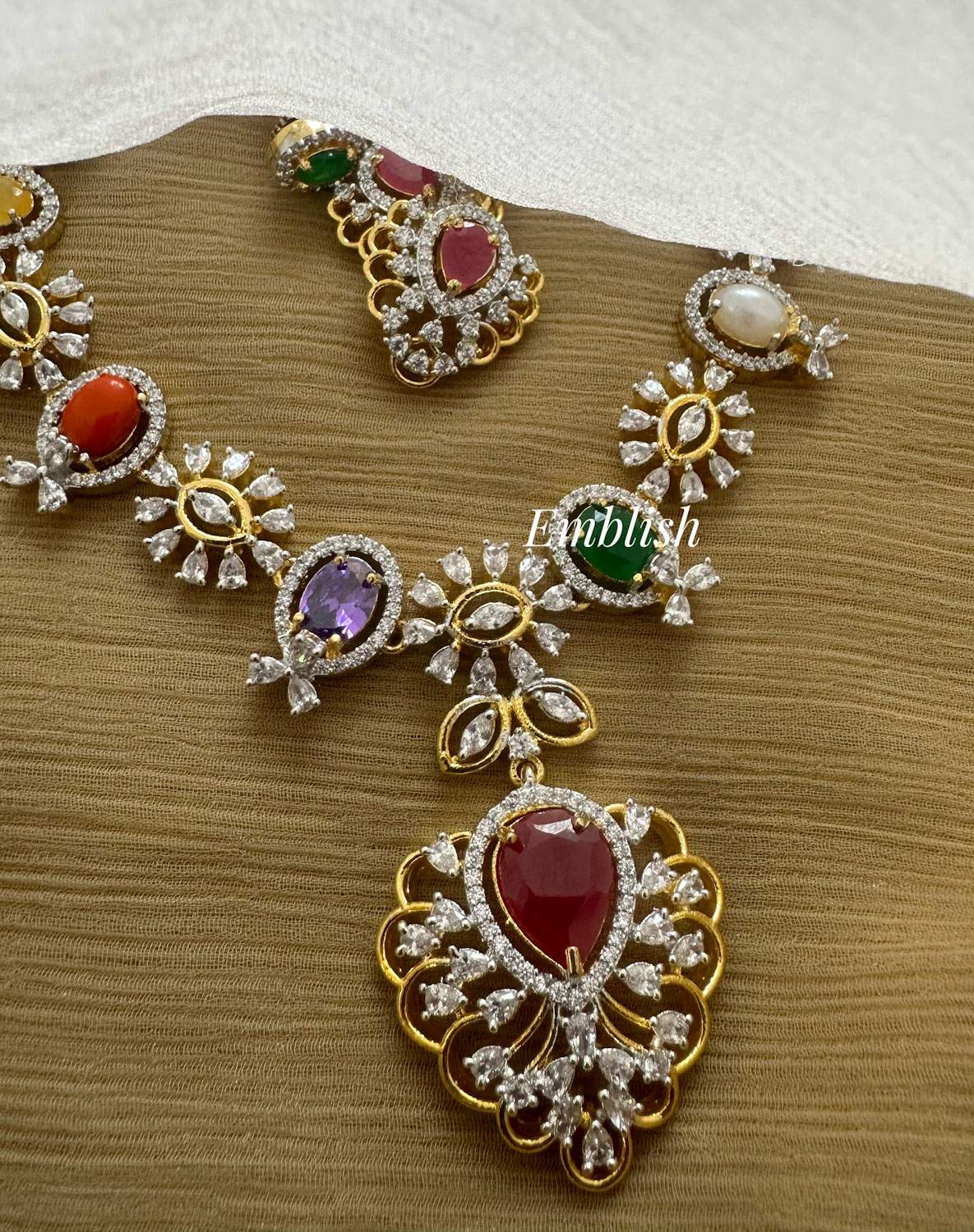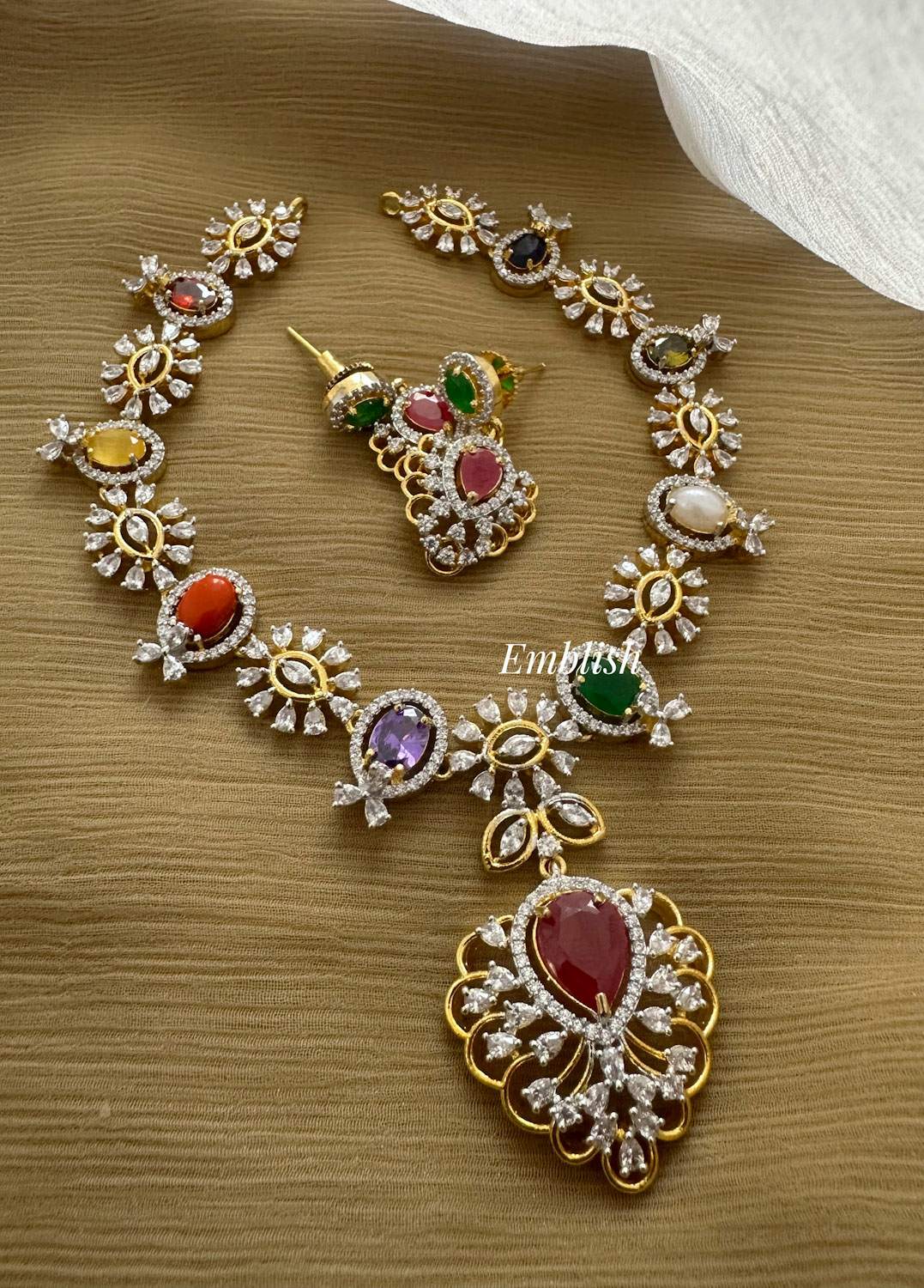 Premium quality Brass made Ad stonesShort Neckpiece Price Mentioned for a set. ..