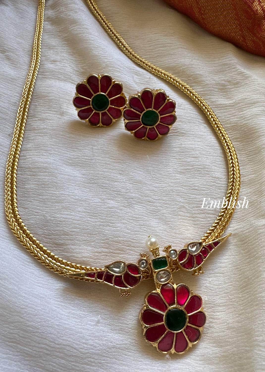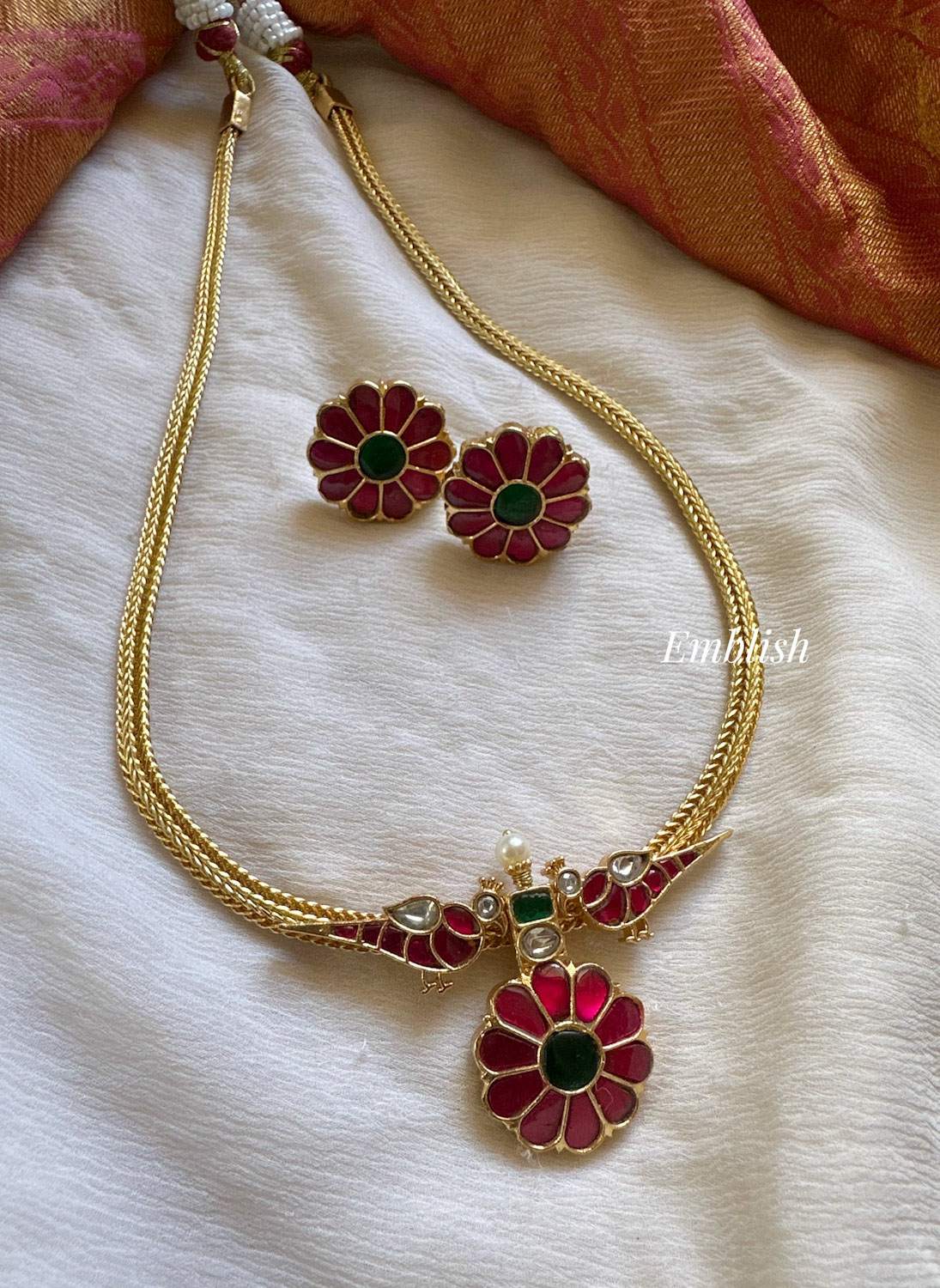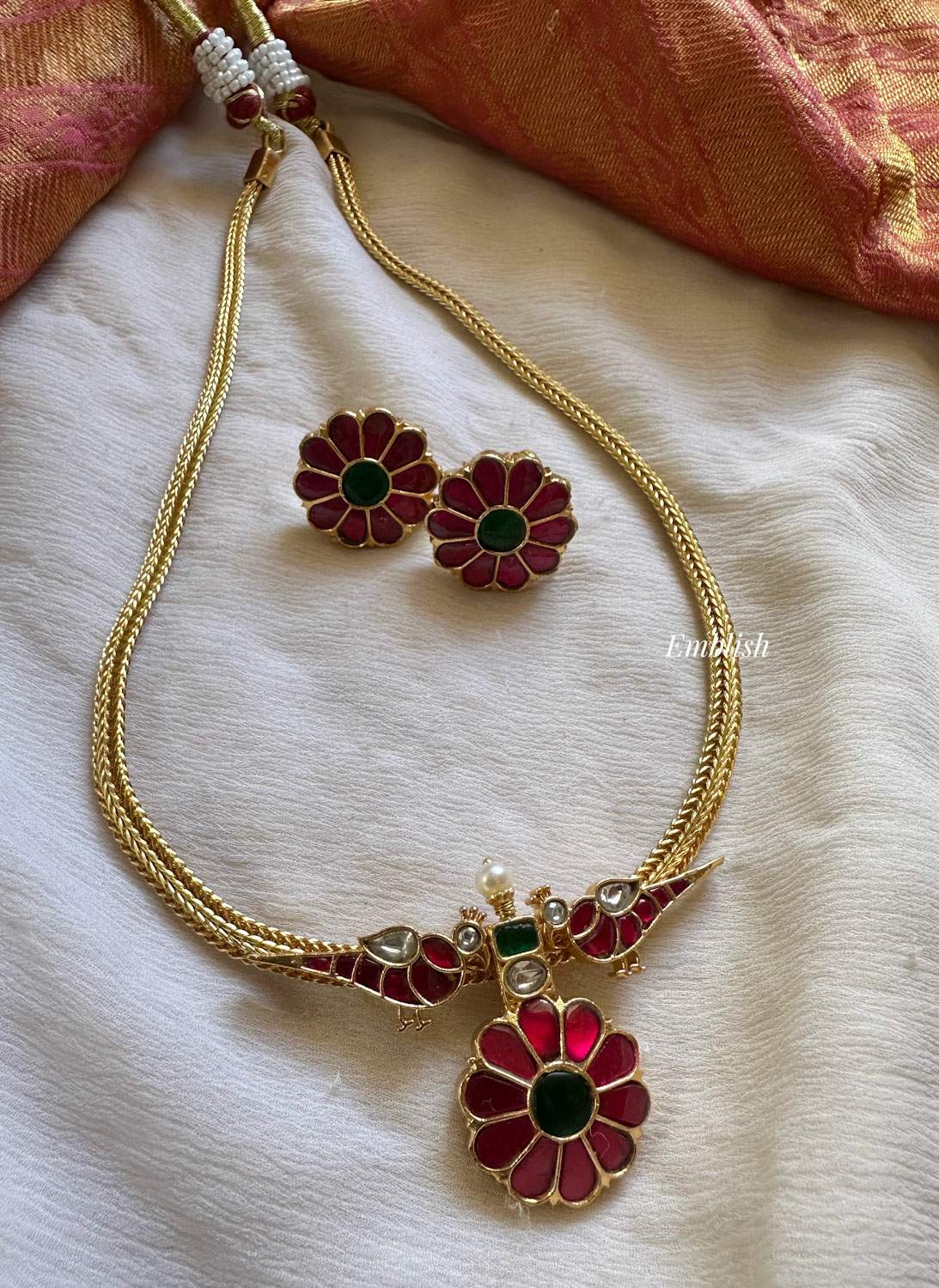Premium QualityBrass MadeAD StonesShort NeckpiecePrice Mentioned for a Set..