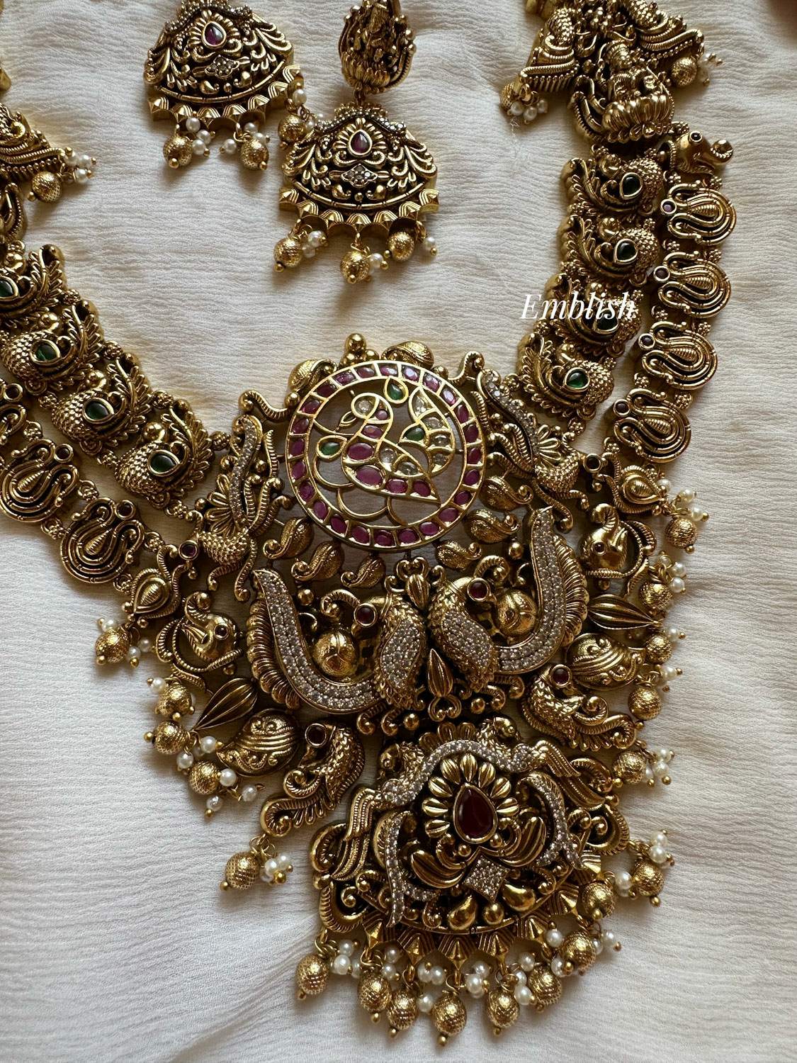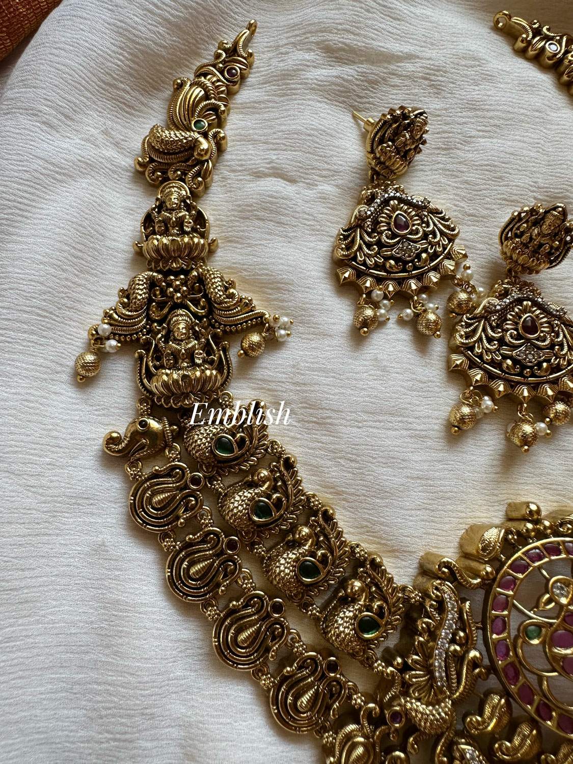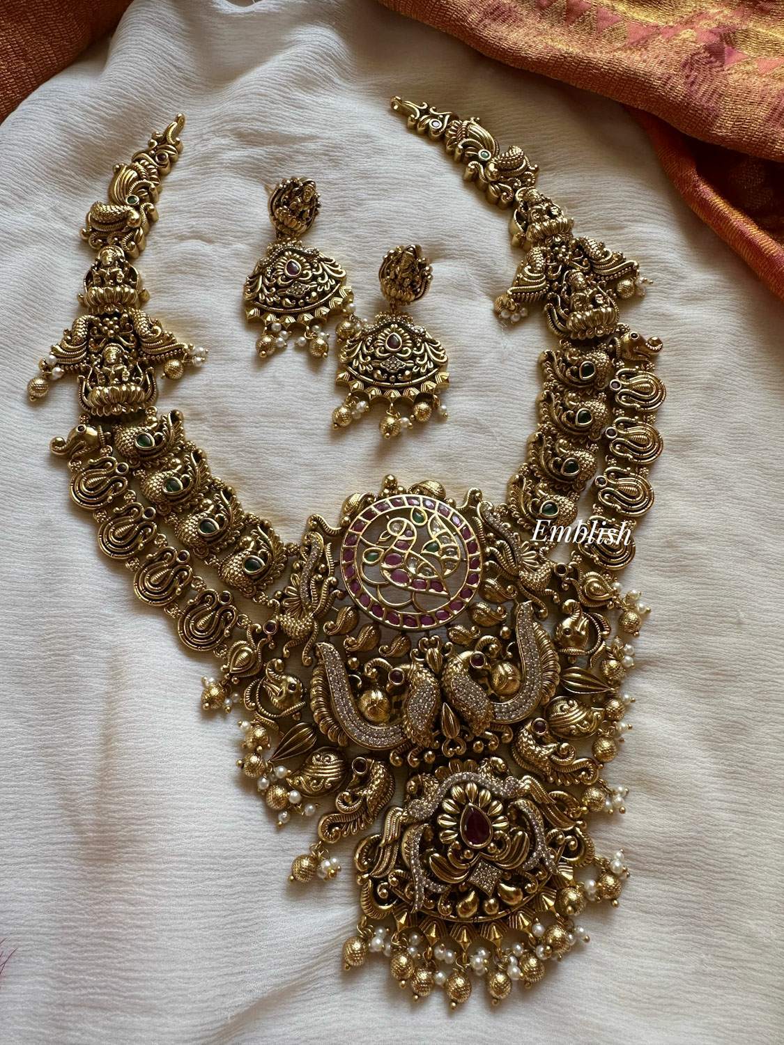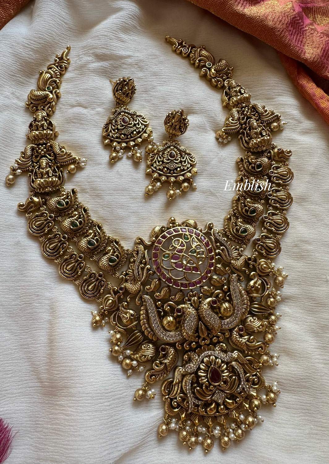 Premium Quality.Brass Made.Ad Stones.Rice pearls.Gold Beads.Price mentioned for a Set...