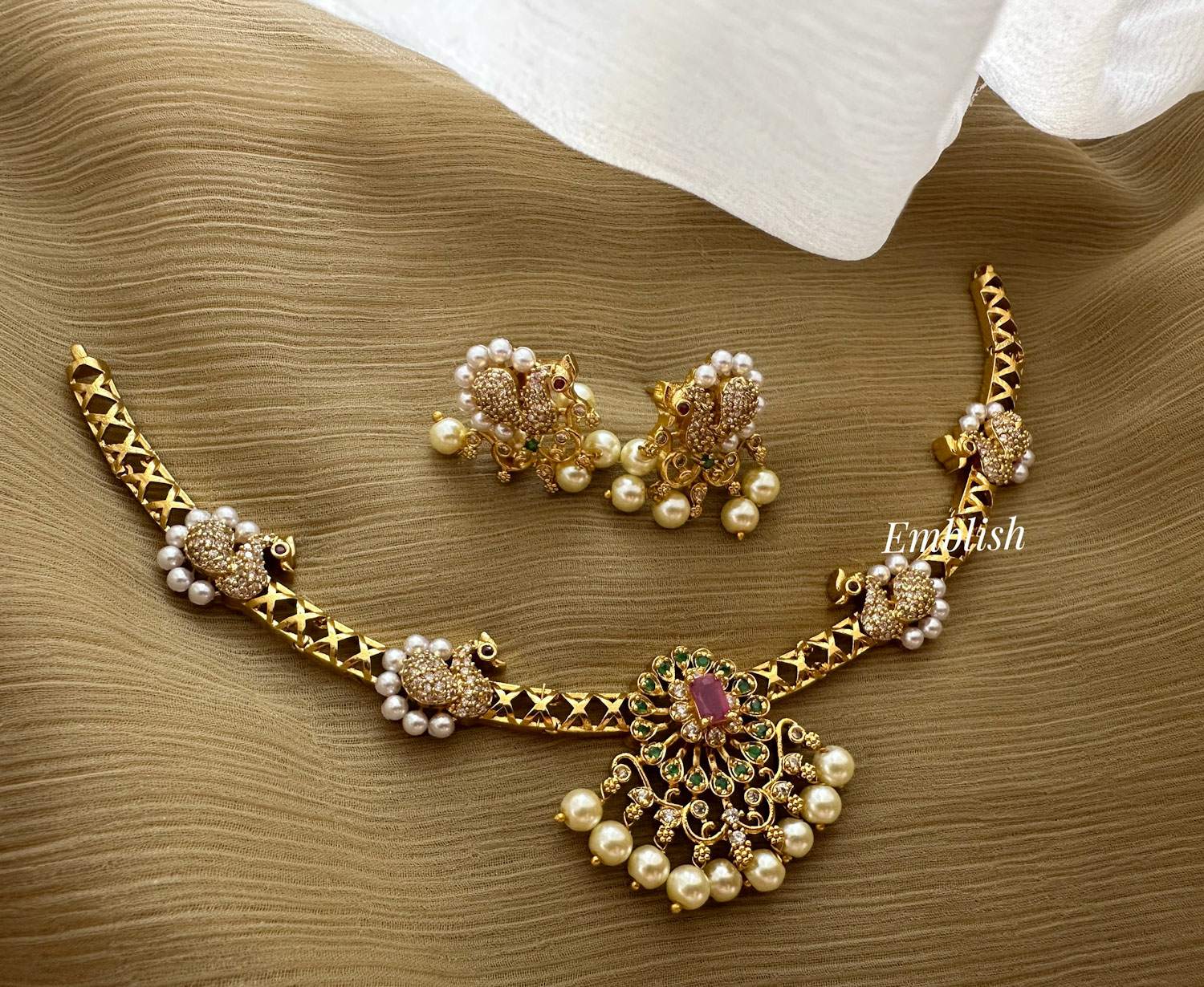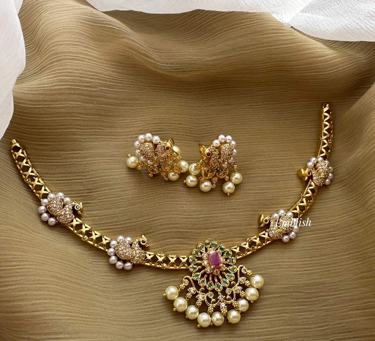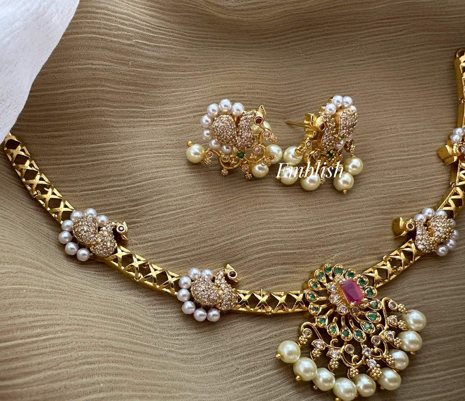 Premium quality. American diamond stones.Short neckpiece. Drop lenght approximately 20cm.C..
