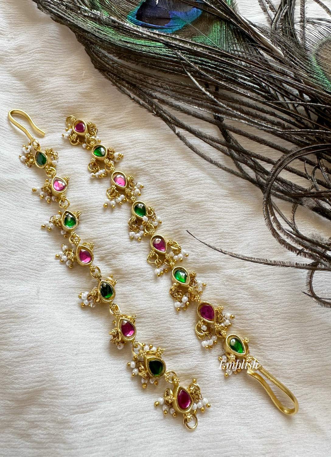 Premium quality.Ad stones.Gold polish.Brass made.Price mentioned is for a pair...