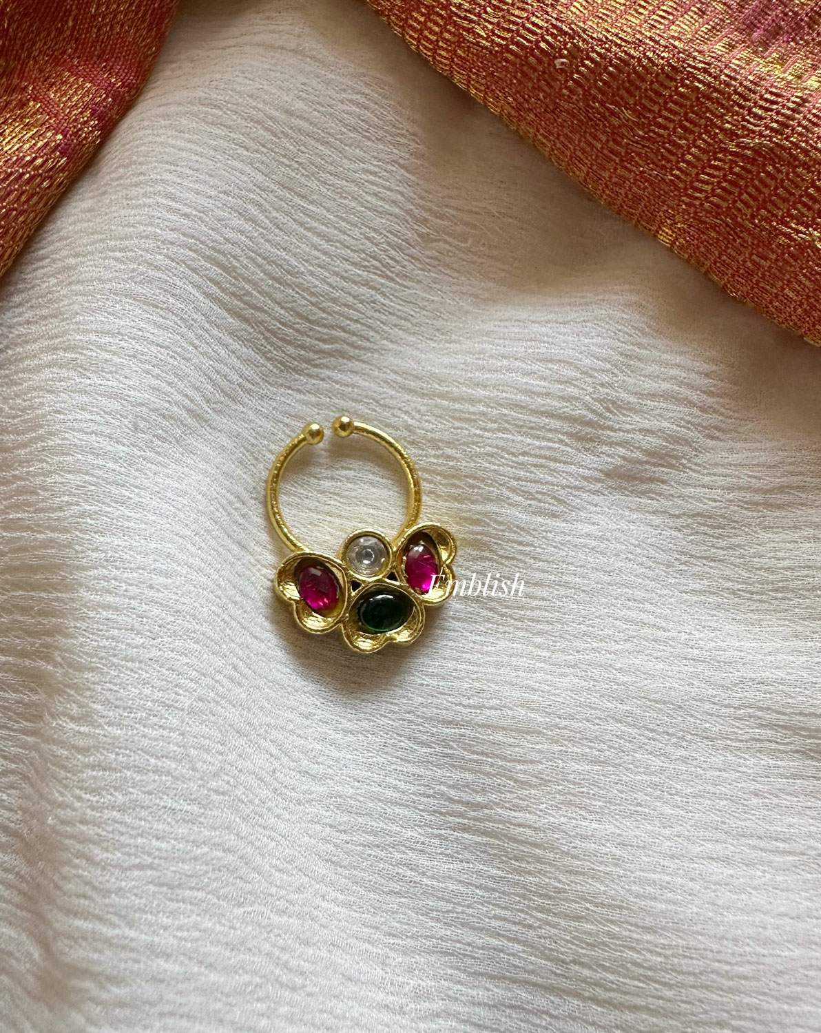 • Kundan Jadau Unique Flower Septum Nose Pin