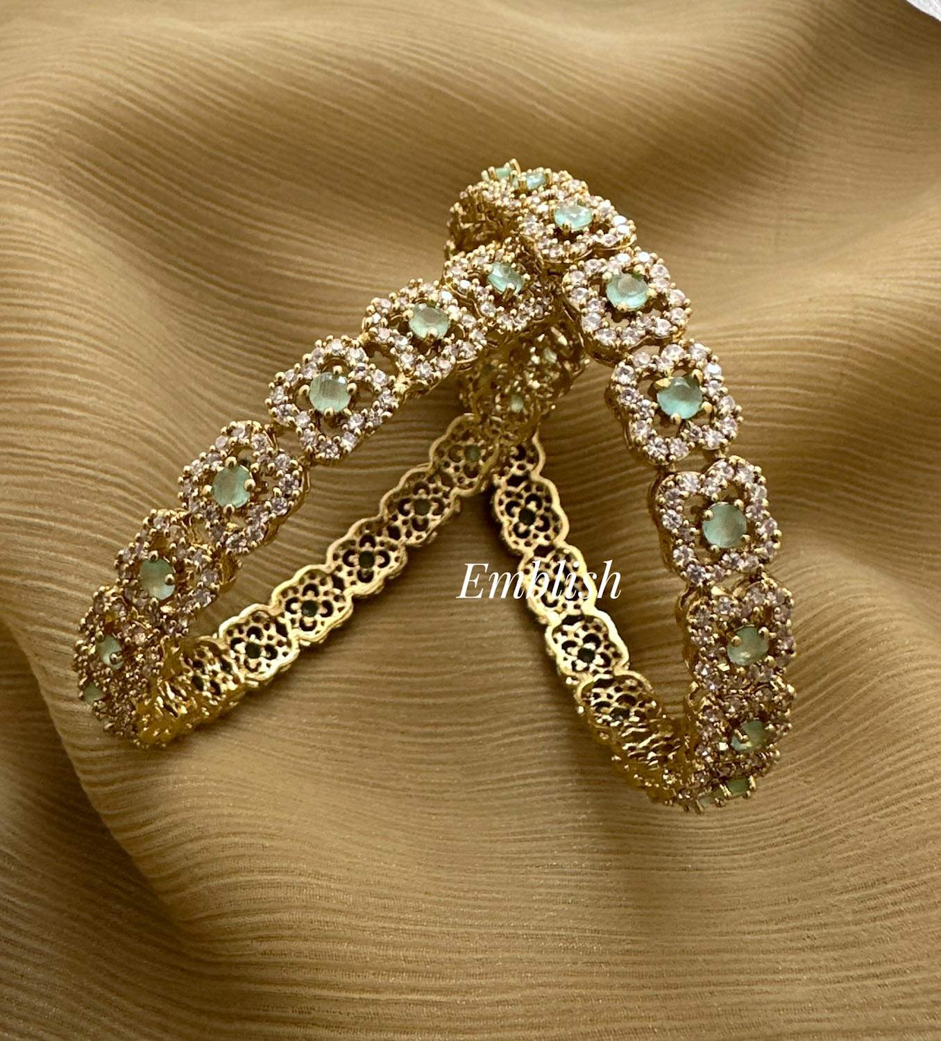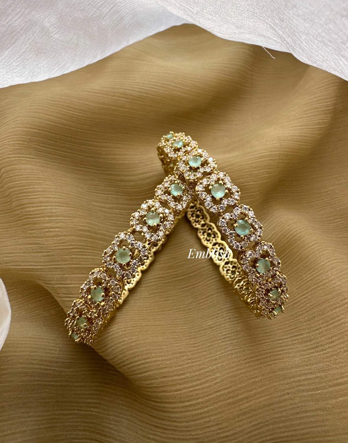 Antique Victorian Flower Bangles - Pastel Blue